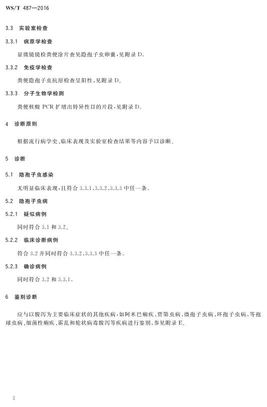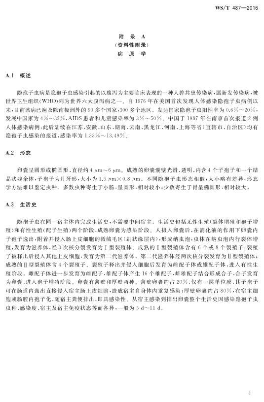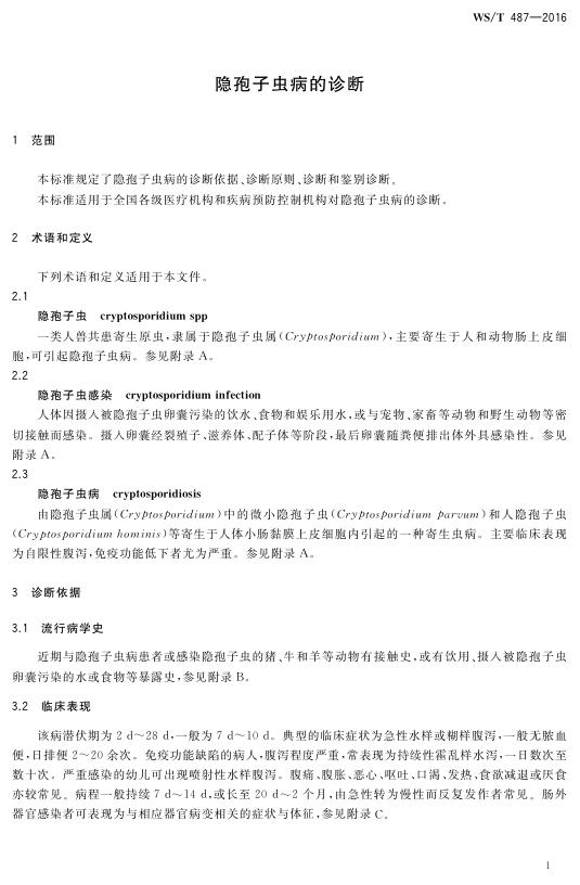 WS/T 487-2016 隐孢子虫病的诊断