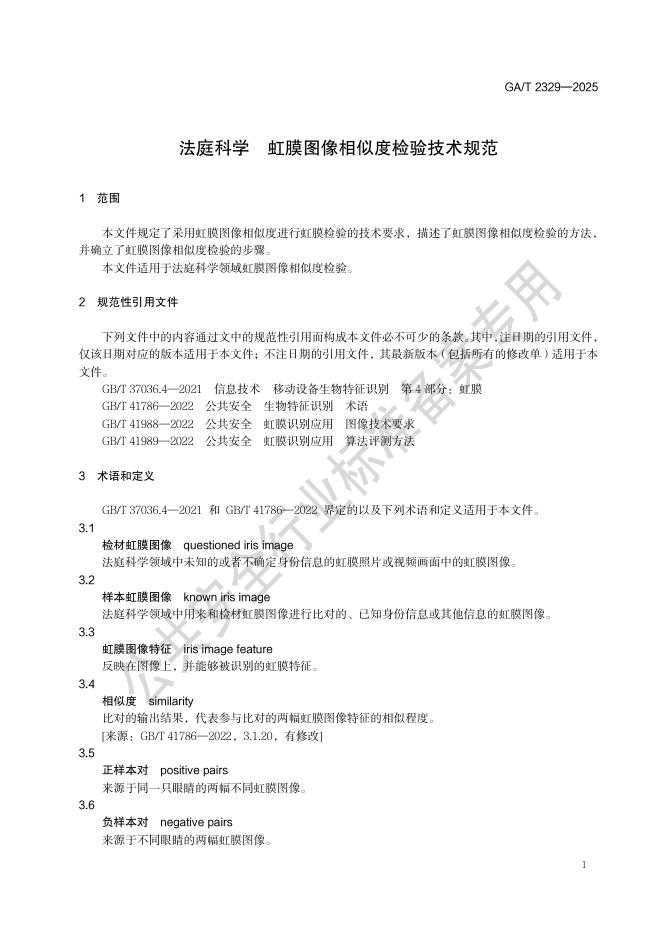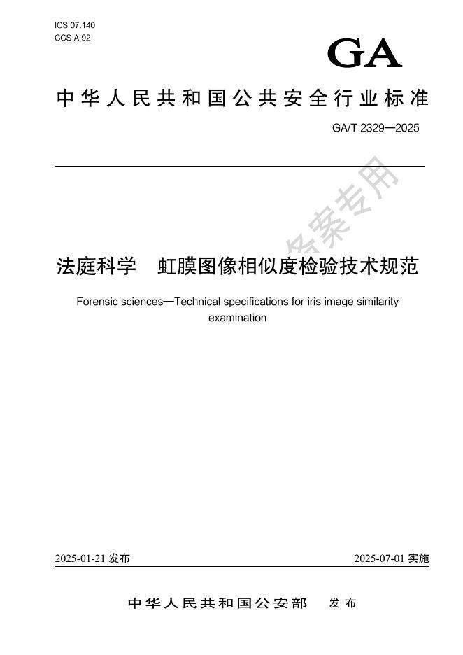 GA/T 2329-2025 法庭科学 虹膜图像相似度检验技术规范