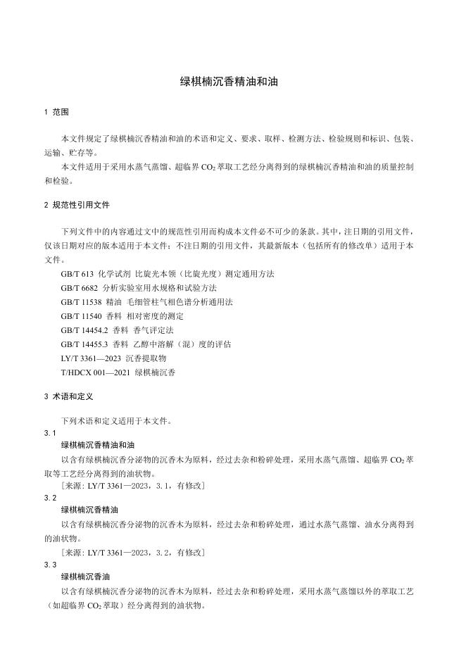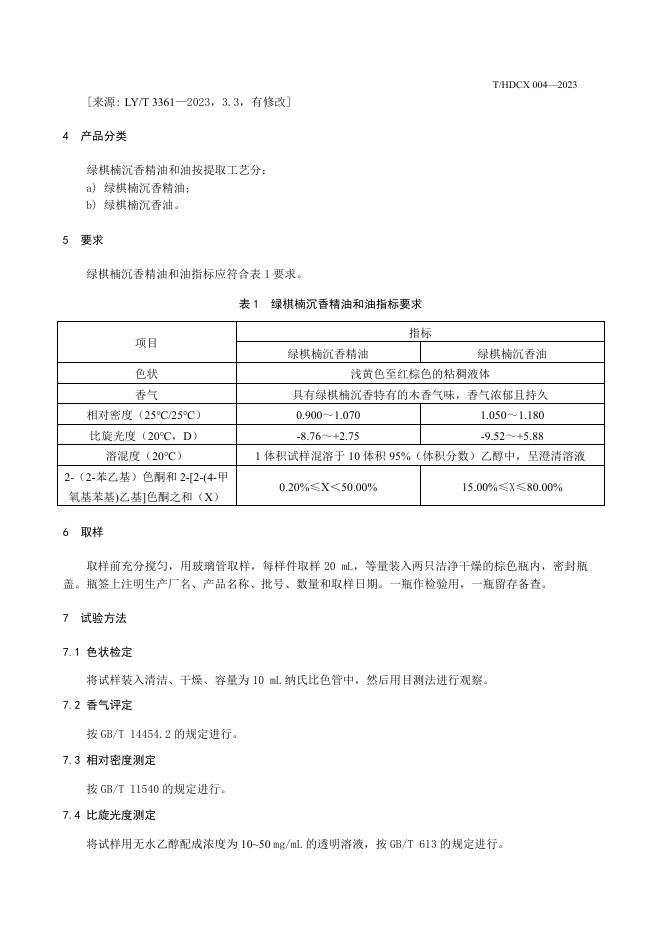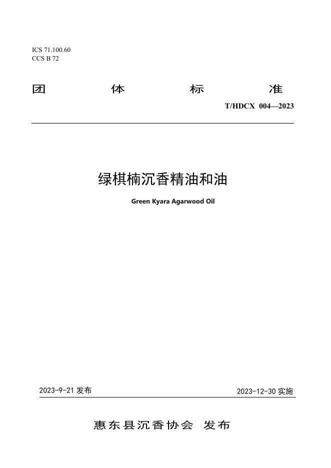 T/HDCX 004-2023 绿棋楠沉香精油和油