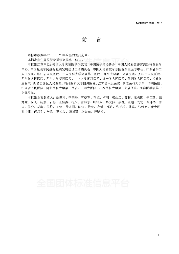 天津大学灾难医学研究院、中国医学救援协会、中国人民武装警察部队特色医学中心、中国包联军民融合包装发展建设工作委员会、中国人民解放军总医院第三医学中心、广东省第二人民医院、浙江省人民医院、中国医科大学附属第一医院、郑州大学第一附属医院、天津市人民医院、四川省人民医院、四川大学华西医院、中南大学湘雅医院、辽宁省人民医院、陕西省人民医院、福建省立医院、新疆自治区人民医院、贵州医科大学附属医院、江苏省人民医院、安徽医科大学第一附属医院、江西省人民医院、河北医科大学第三医院、山西大医院、广西医科大学第二附属医院、海
