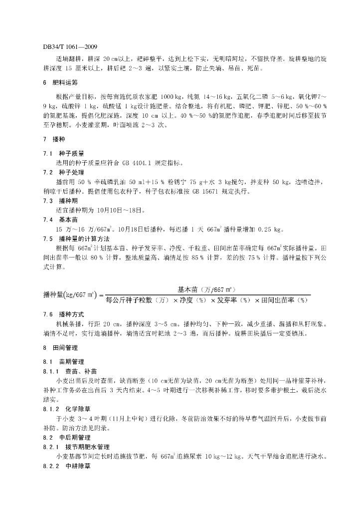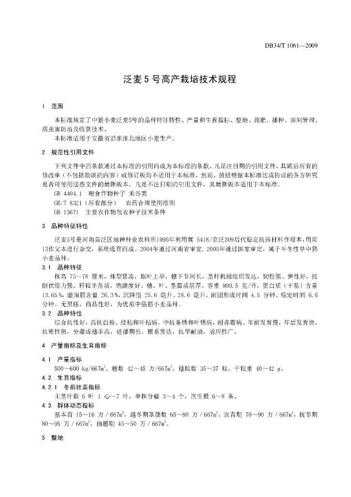 DB34/T 1061-2009 泛麦5号高产栽培技术规程