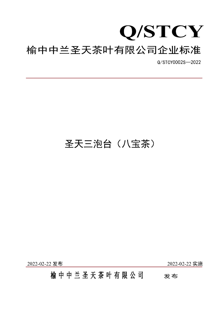 Q/STCY 0002S-2022 圣天三泡台(八宝茶)