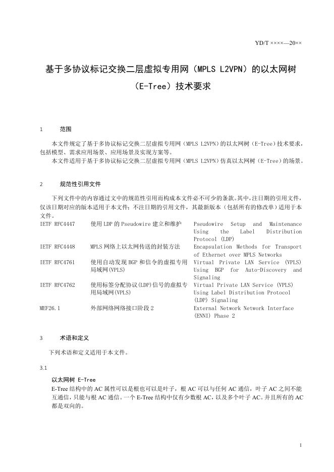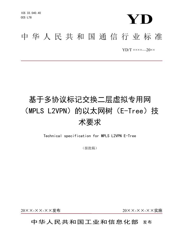 YD/T 4791-2024 基于多协议标记交换二层虚拟专用网(MPLS L2VPN)的以太网树(E-Tree)技术要求