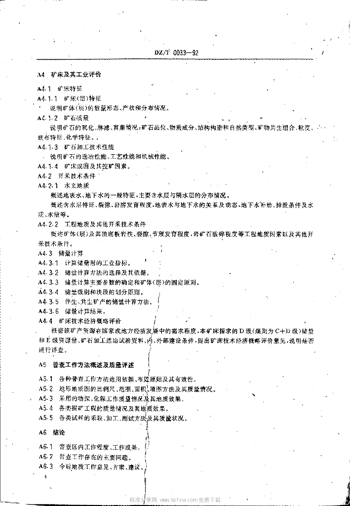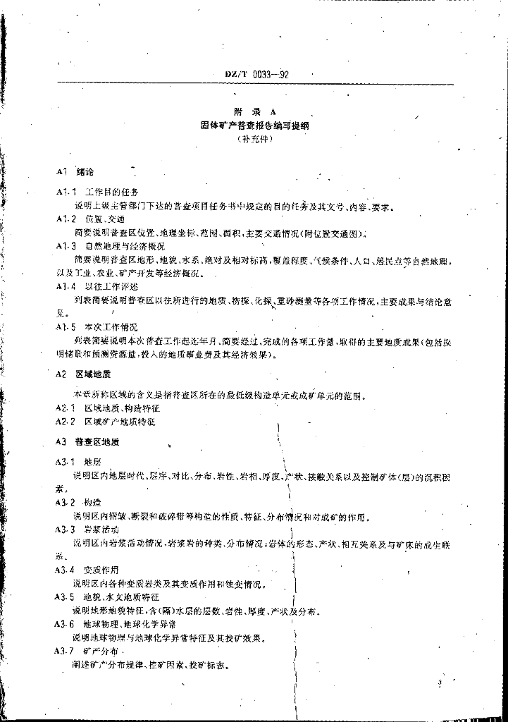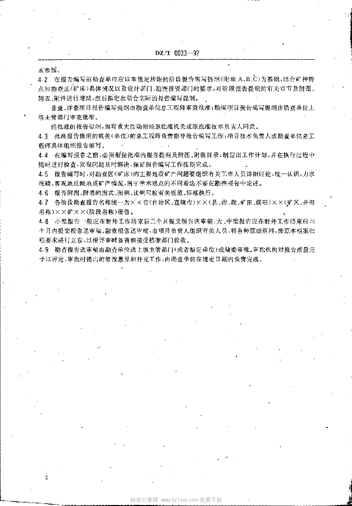 DZ/T 0033-1992 固体矿产勘查报告编写规定