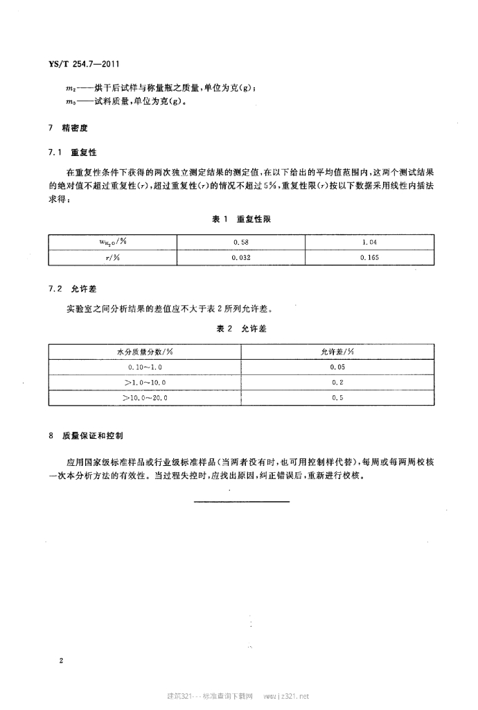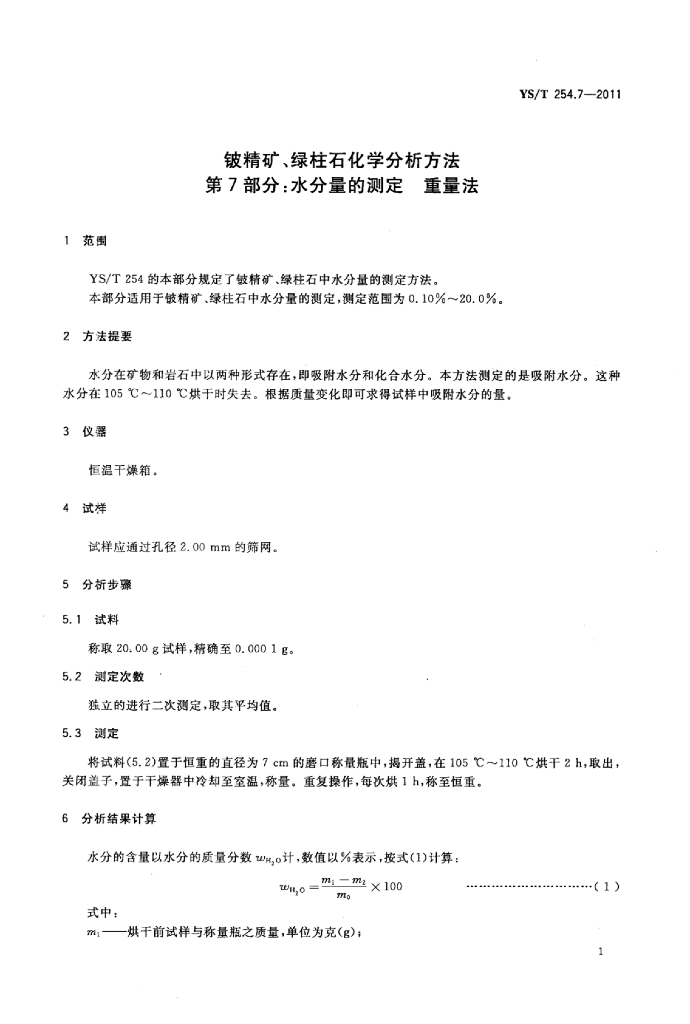 YS/T 254.7-2011 铍精矿、绿柱石化学分析方法 第7部分:水分量的测定重量法