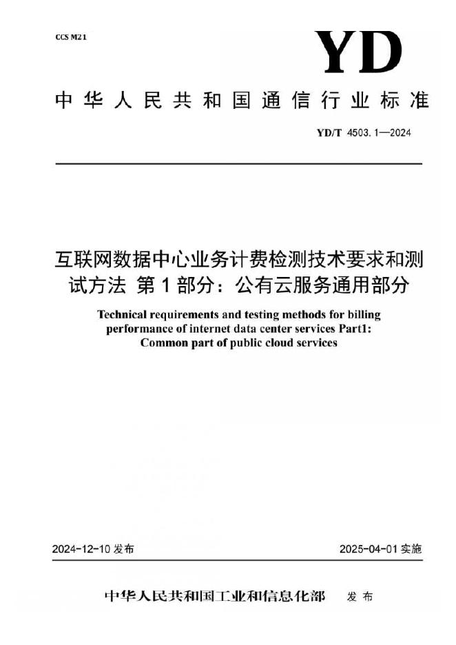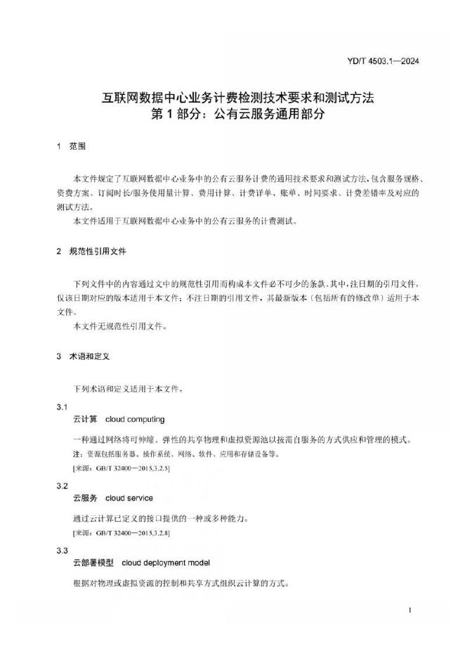 YD/T 4503.1-2024 互联网数据中心业务计费检测技术要求和测试方法 第1部分:公有云服务通用部分