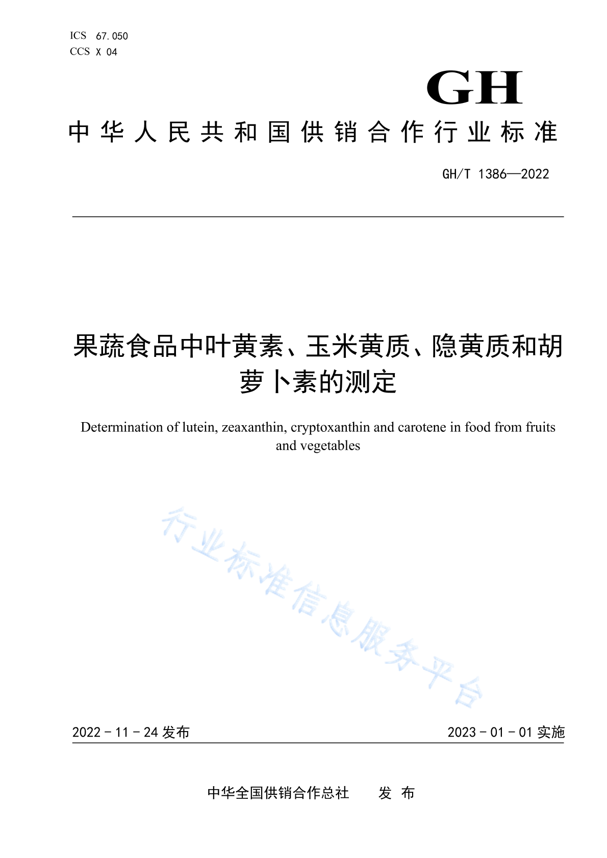 - 国际标准分类号:67.050