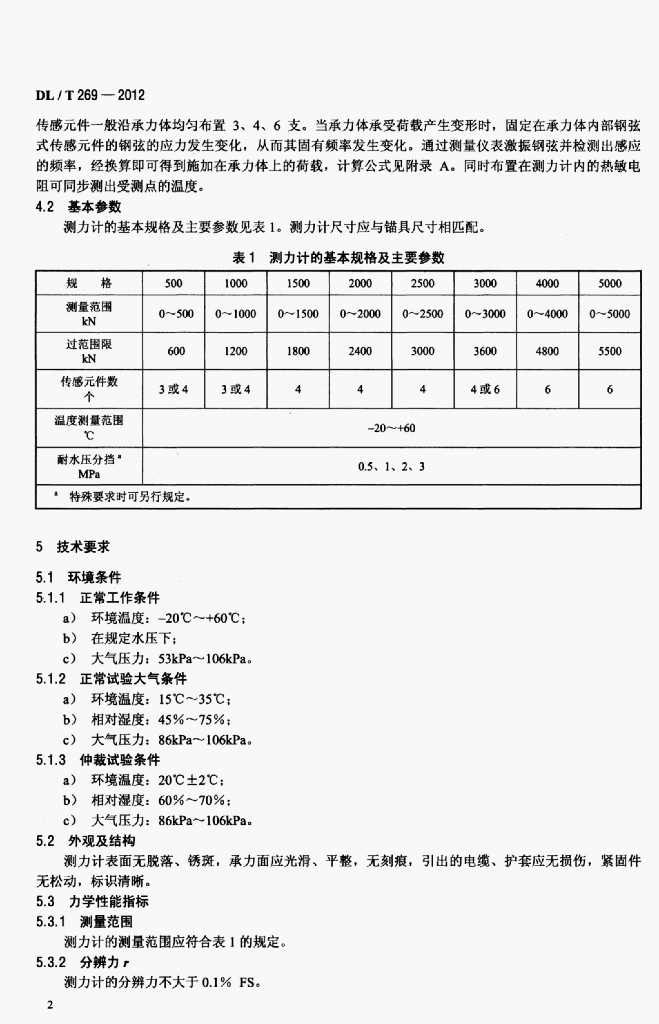 DL/T 269-2012 钢弦式锚索测力计