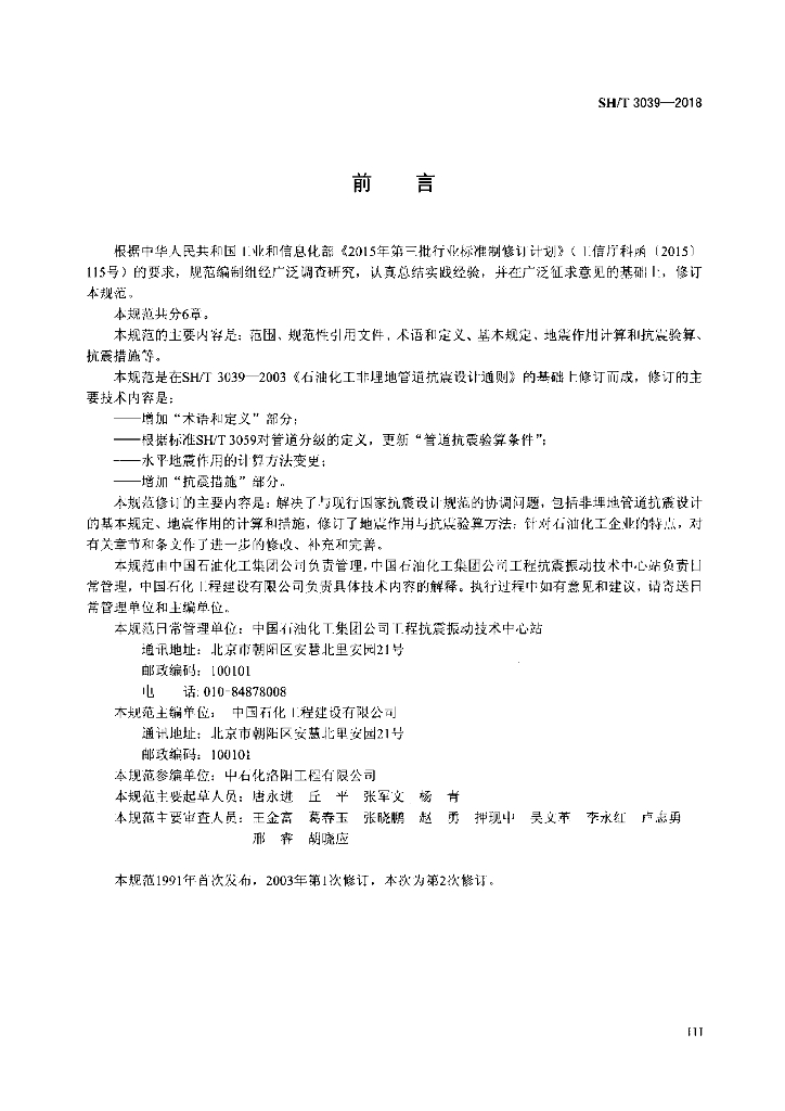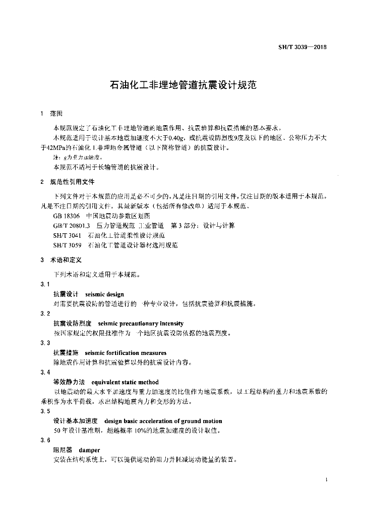 SH/T 3039-2018 石油化工非埋地管道抗震设计规范