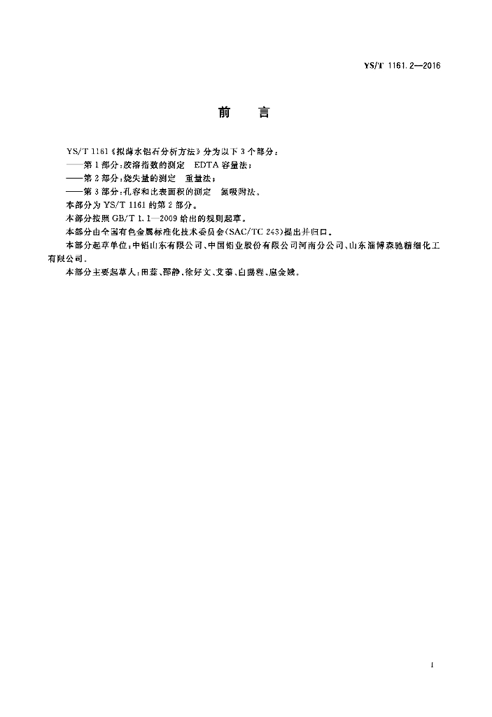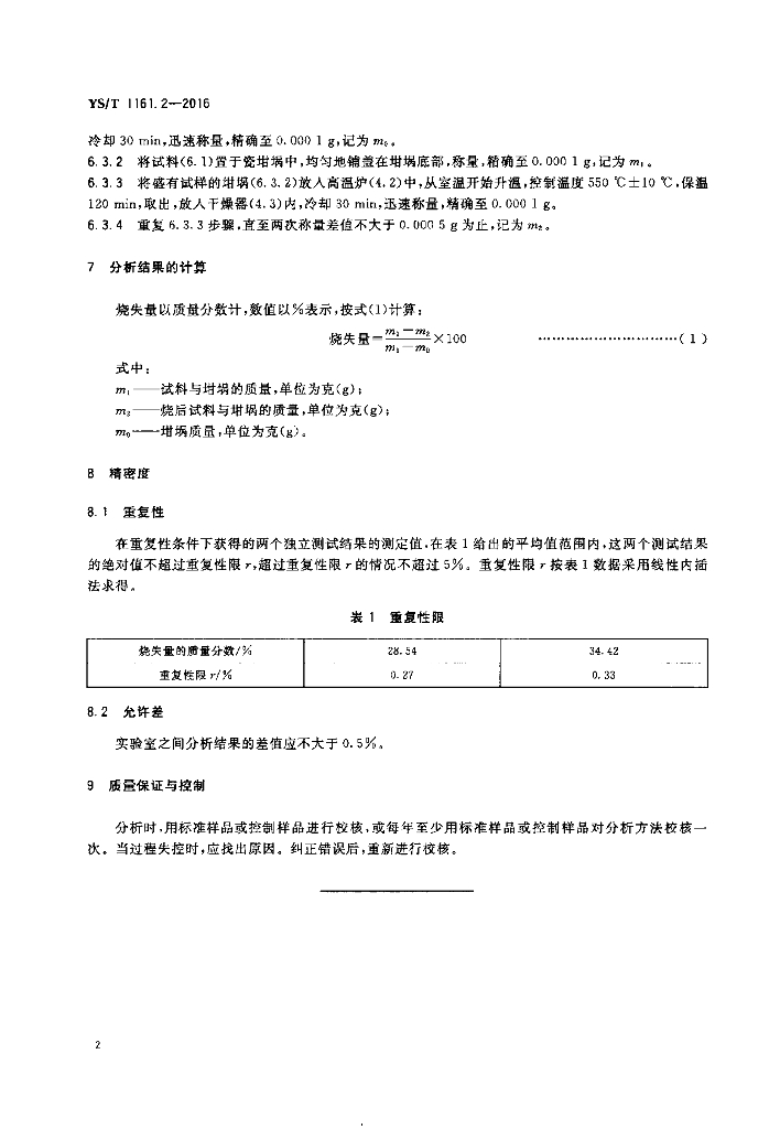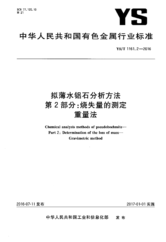 YS/T 1161.2-2016 拟薄水铝石分析方法 第2部分:烧失量的测定 重量法