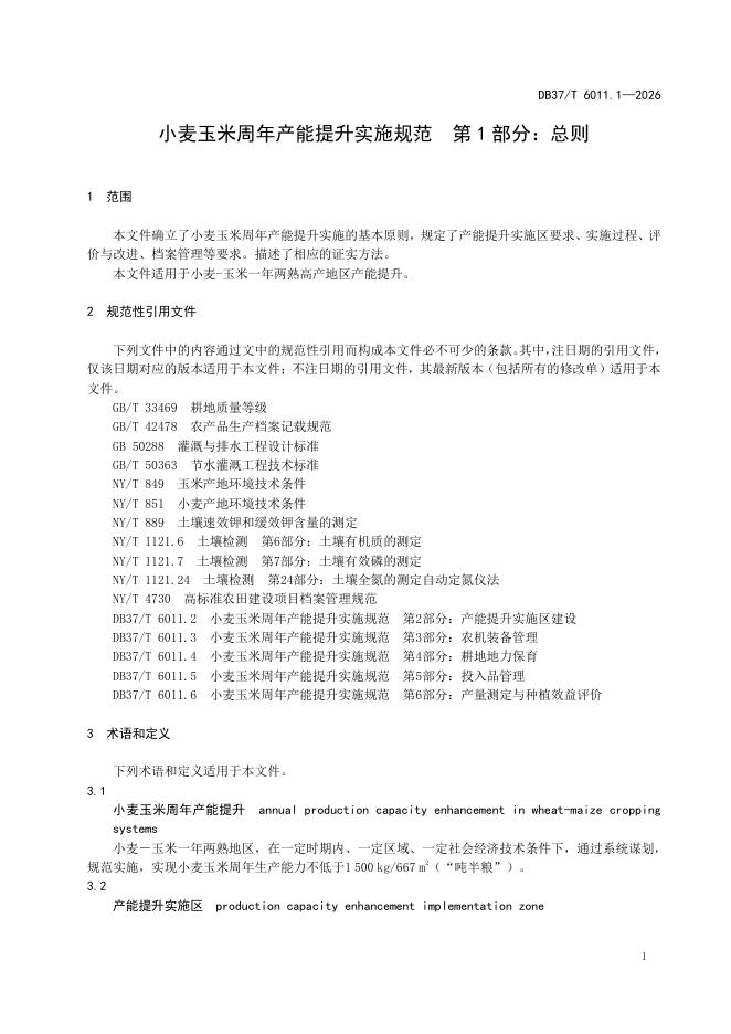 DB37/T 6011.1-2025 小麦玉米周年产能提升实施规范 第1部分: 总则