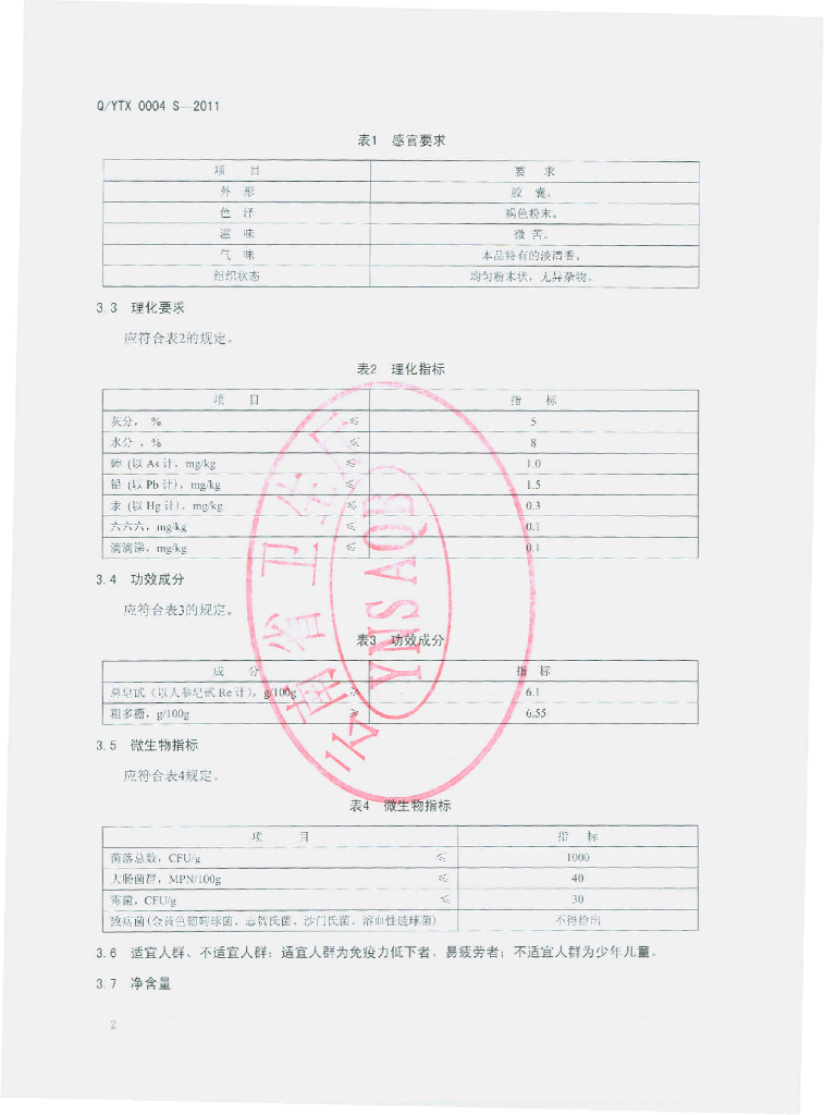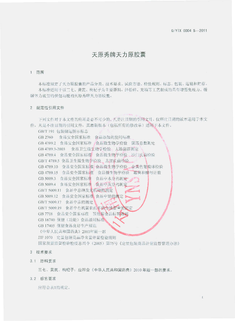 Q/YTX 0004S-2011 天原秀牌天力原胶囊