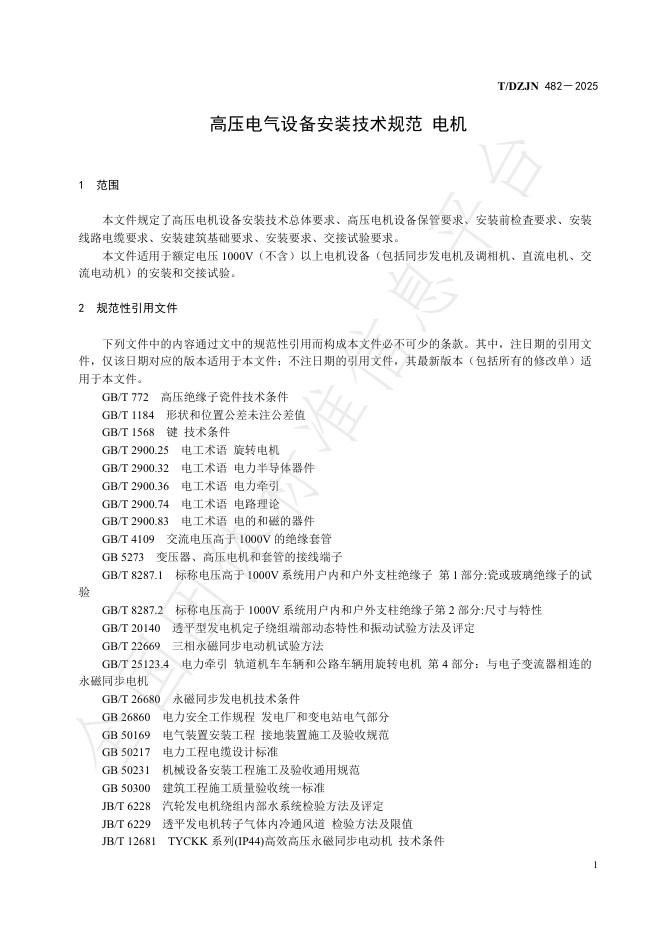 T/DZJN 482-2025 高压电气设备安装技术规范 电机