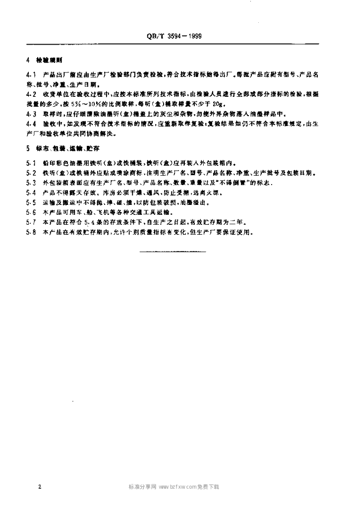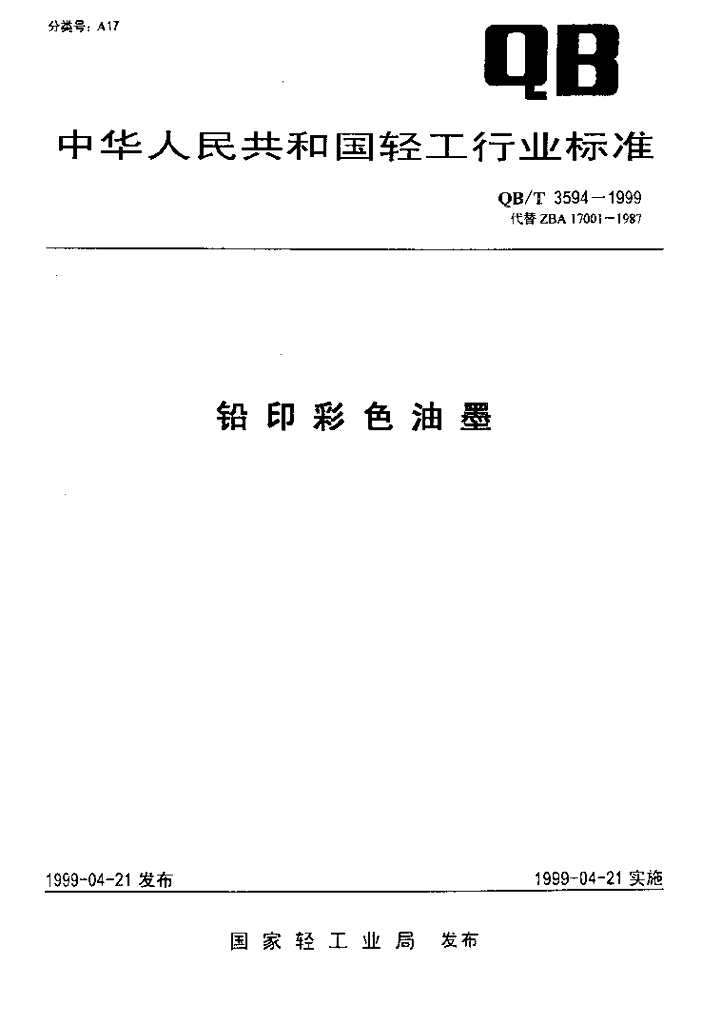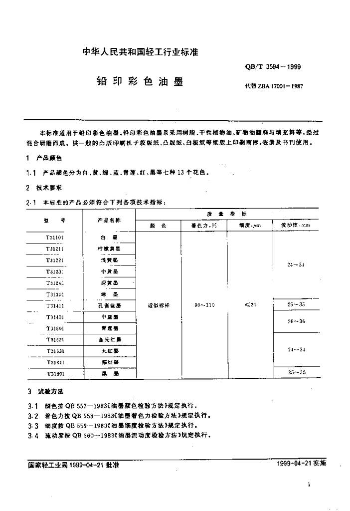 QB/T 3594-1999 铅印彩色油墨