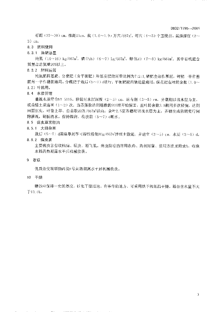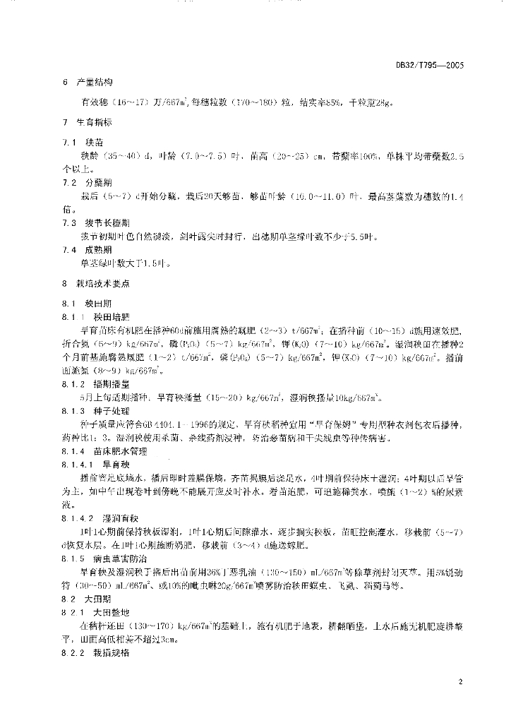 DB32/T 795-2005 优质杂交籼稻扬两优6号生产技术规程