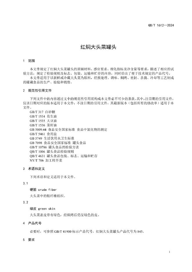 QB/T 1612-2024 红焖大头菜罐头