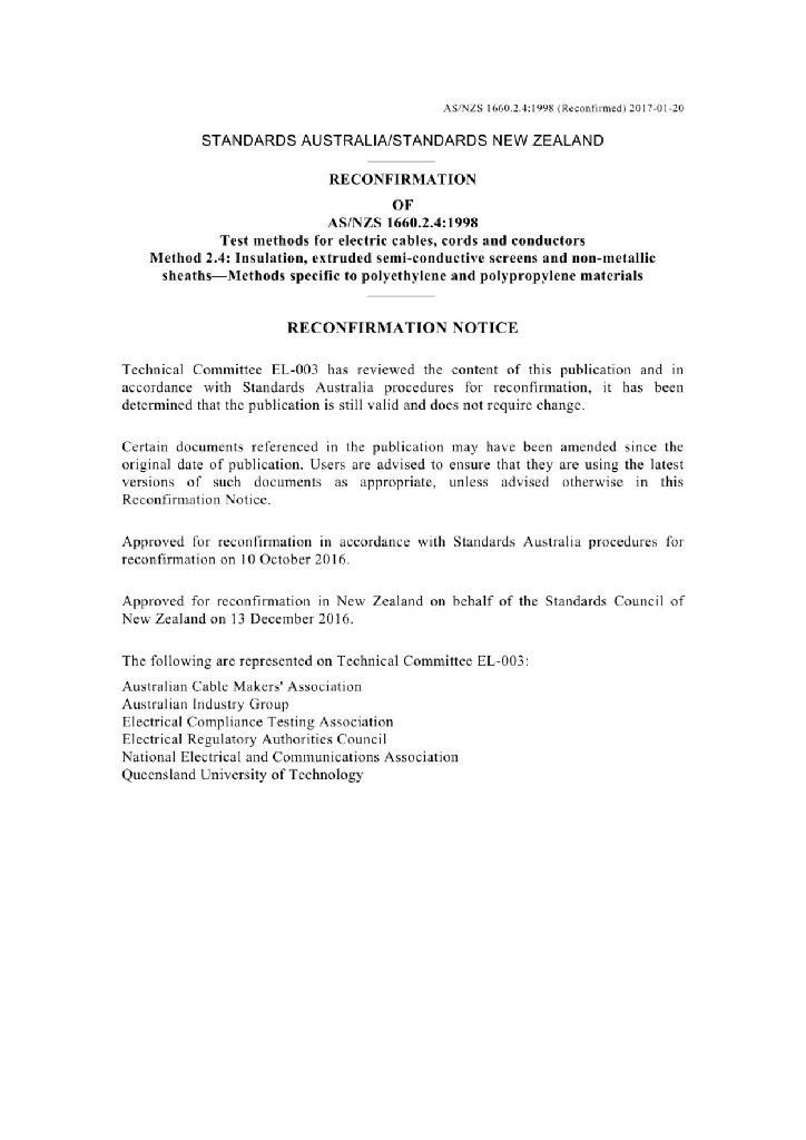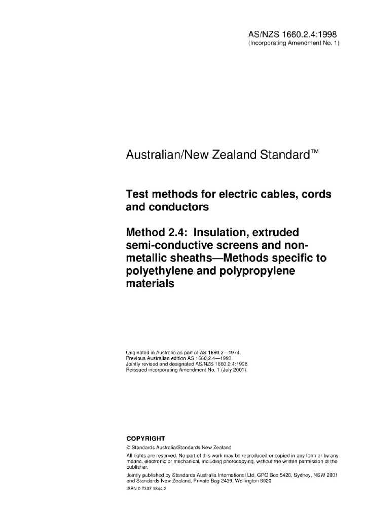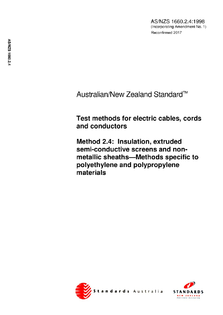 AS/NZS 1660.2.4:1998 电缆 软线 导体的测试方法 方法2.4 绝缘 挤包半导体屏蔽和非金属护套 聚乙烯和聚丙烯材料的特定方法