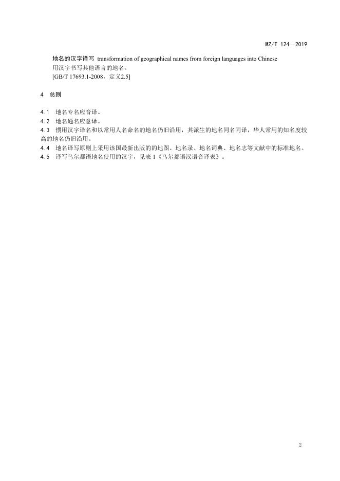 MZ/T 124-2019 外语汉字译写导则:乌尔都语