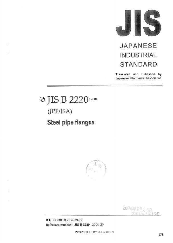 JIS B2220-2004 钢制管法兰Steel pipe flanges