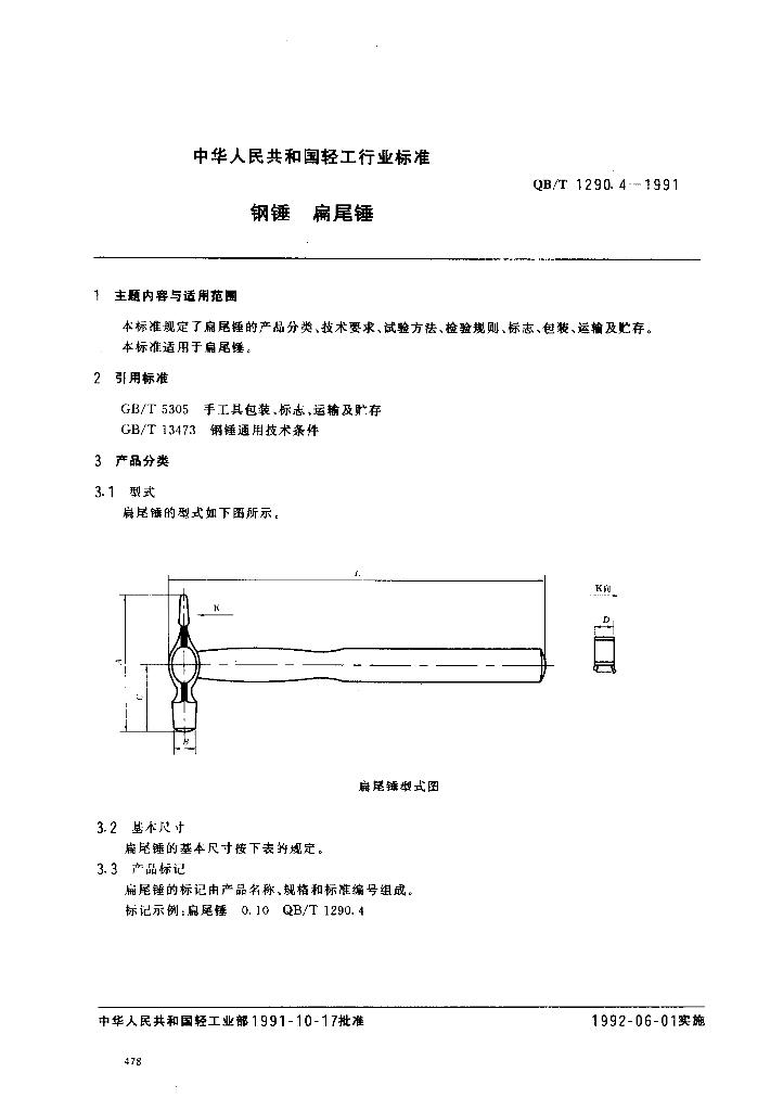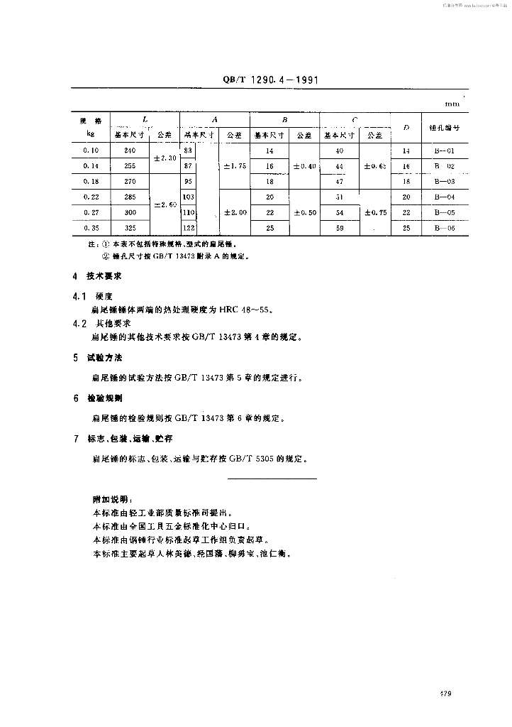 QB/T 1290.4-1991 钢锤扁尾锤