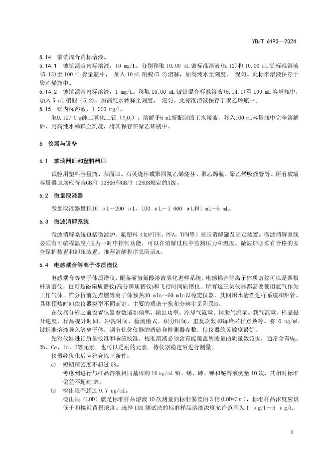 YB/T 6193-2024 钼铁 铅、锡、砷、锑和铋含量的测定 电感耦合等离子体质谱法(ICP-MS)