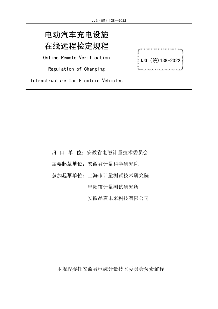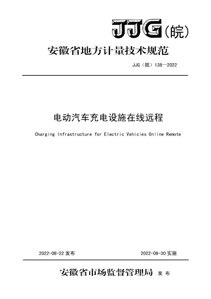 JJG(皖)138-2022 电动汽车充电设施在线远程检定规程