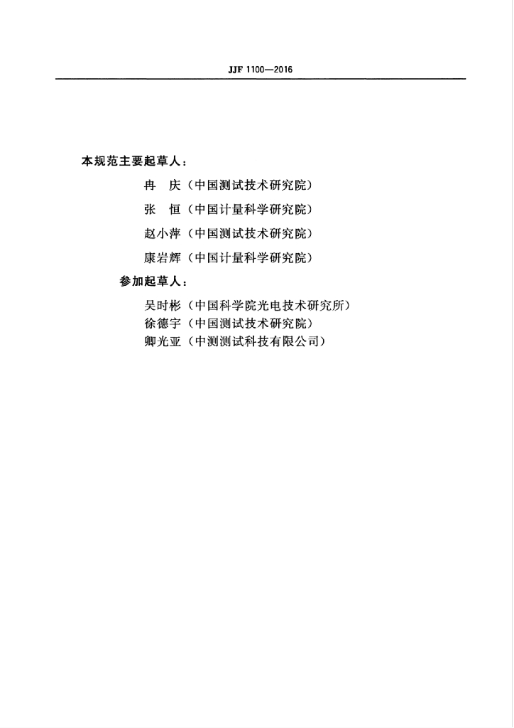 冉庆(中国测试技术研究院)、张恒(中国计量科学研究院)、赵小萍(中国测试技术研究院)、康岩辉(中国计量科学研究院)、吴时彬(中国科学院光电技术研究所)、徐德宇(中国测试技术研究院)、卿光亚(中测测试科技有限公司)