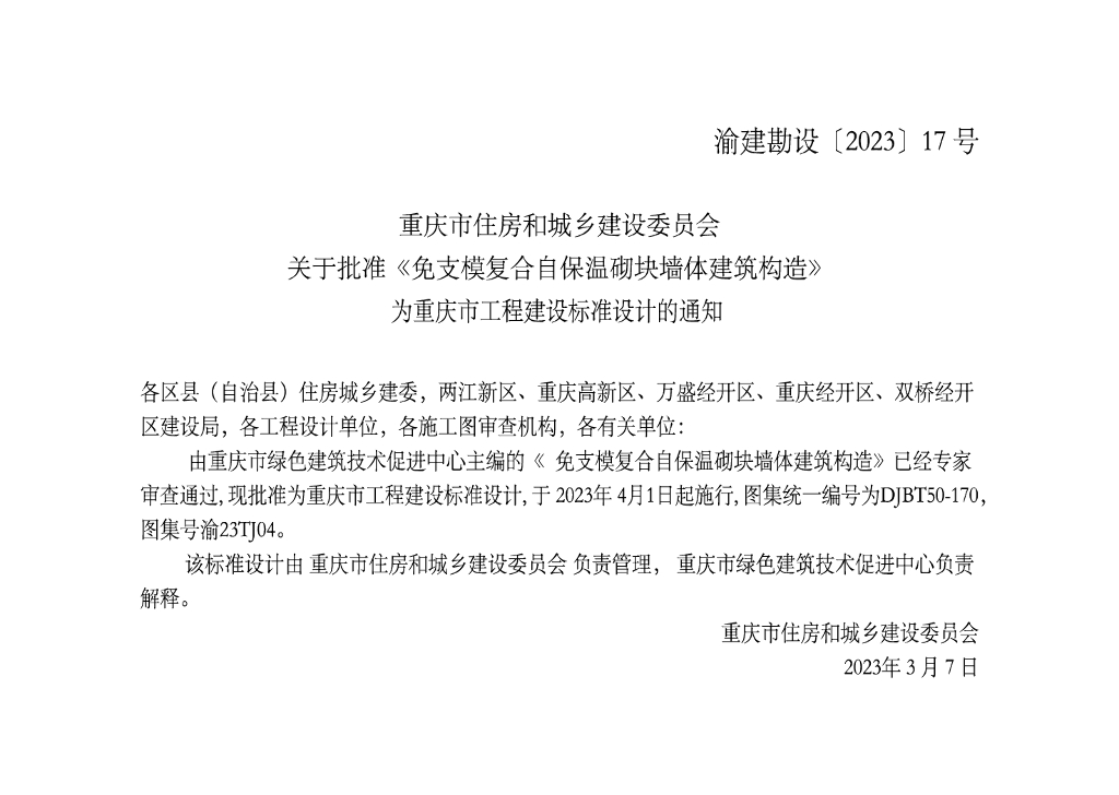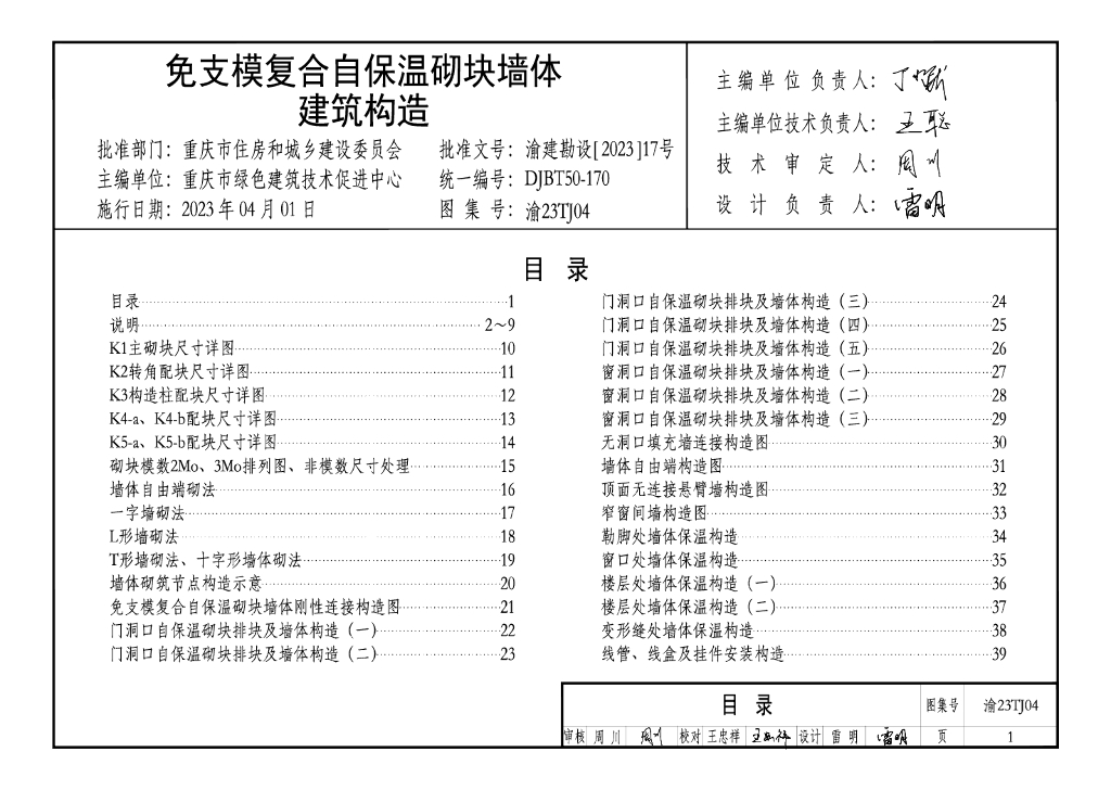 渝23TJ04 免支模复合自保温砌块墙体建筑构造图集(DJBT50-170)