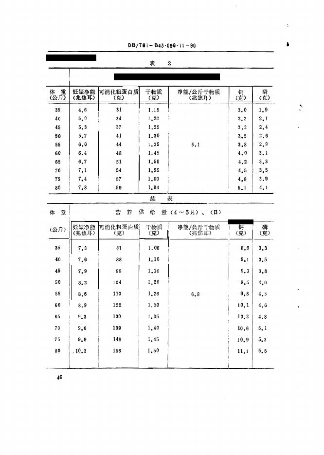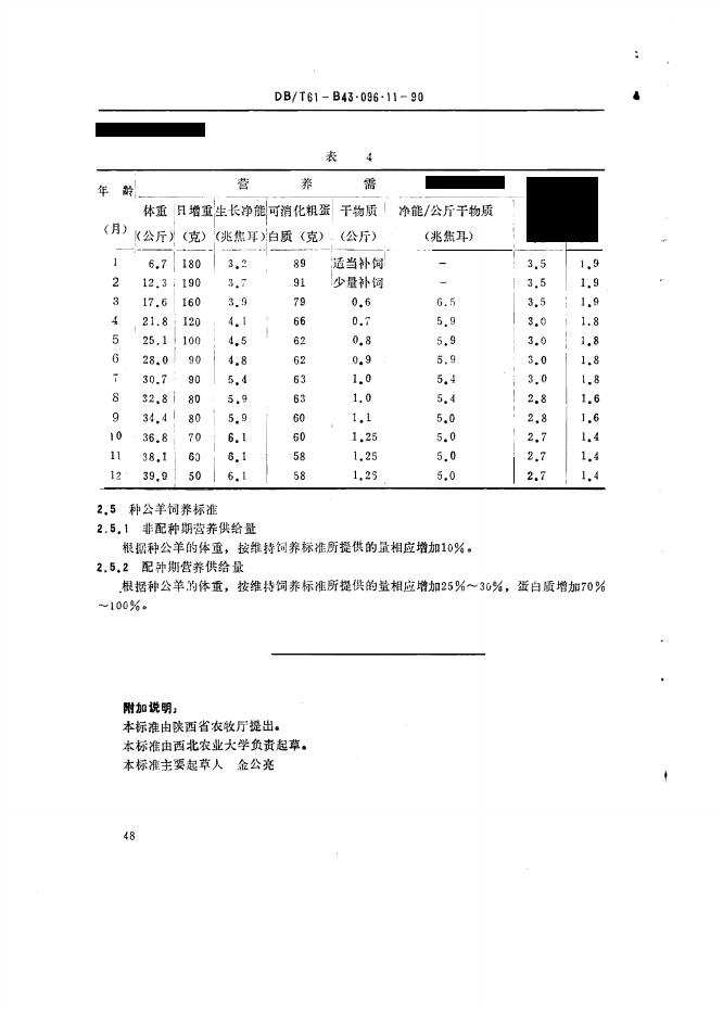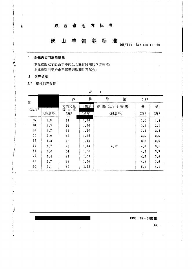 DB61/T B43.096.11-1990 奶山羊饲养标准