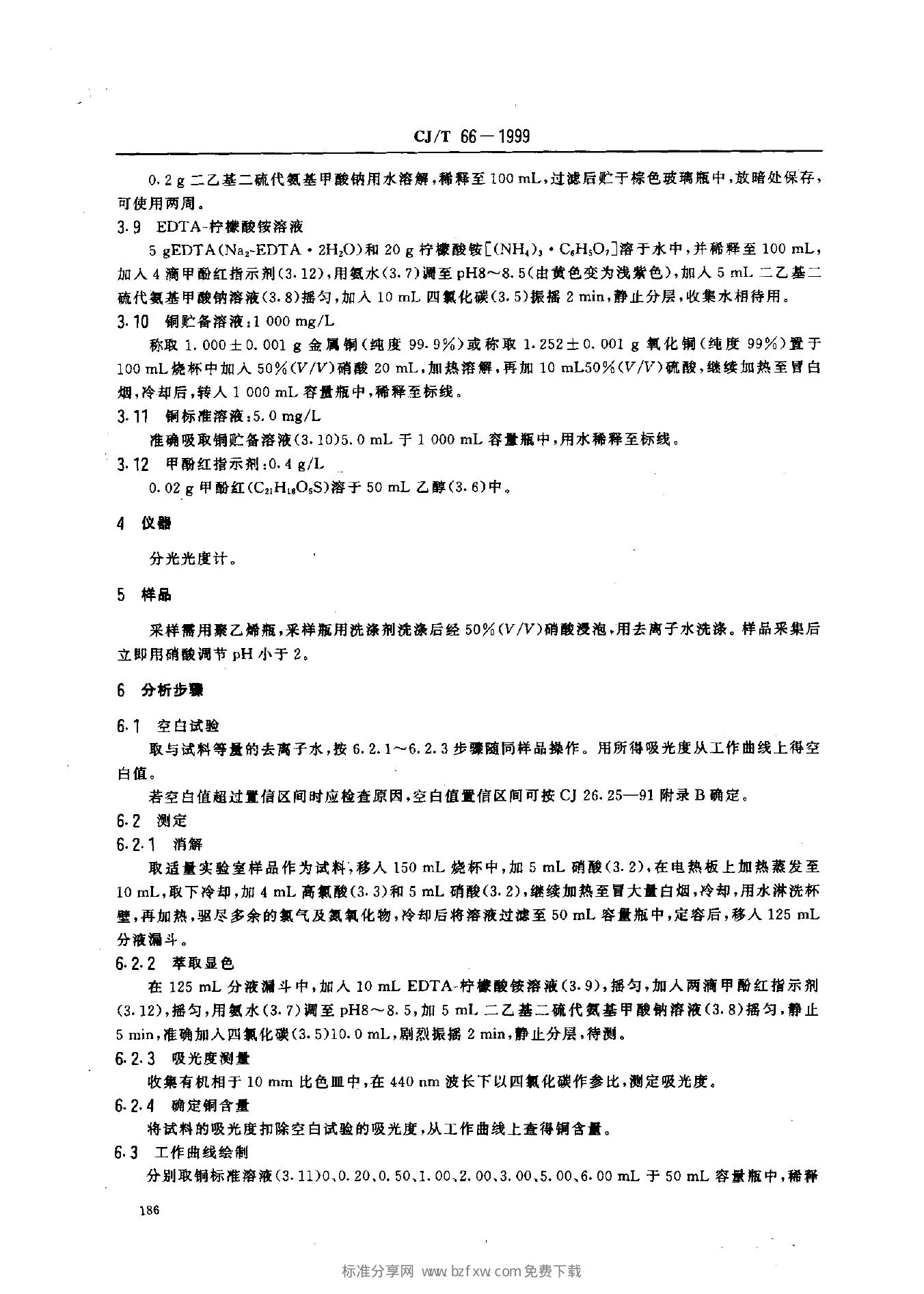 CJ/T 66-1999 城市污水 铜的测定 二乙基二硫代氨基甲酸钠分光光度法