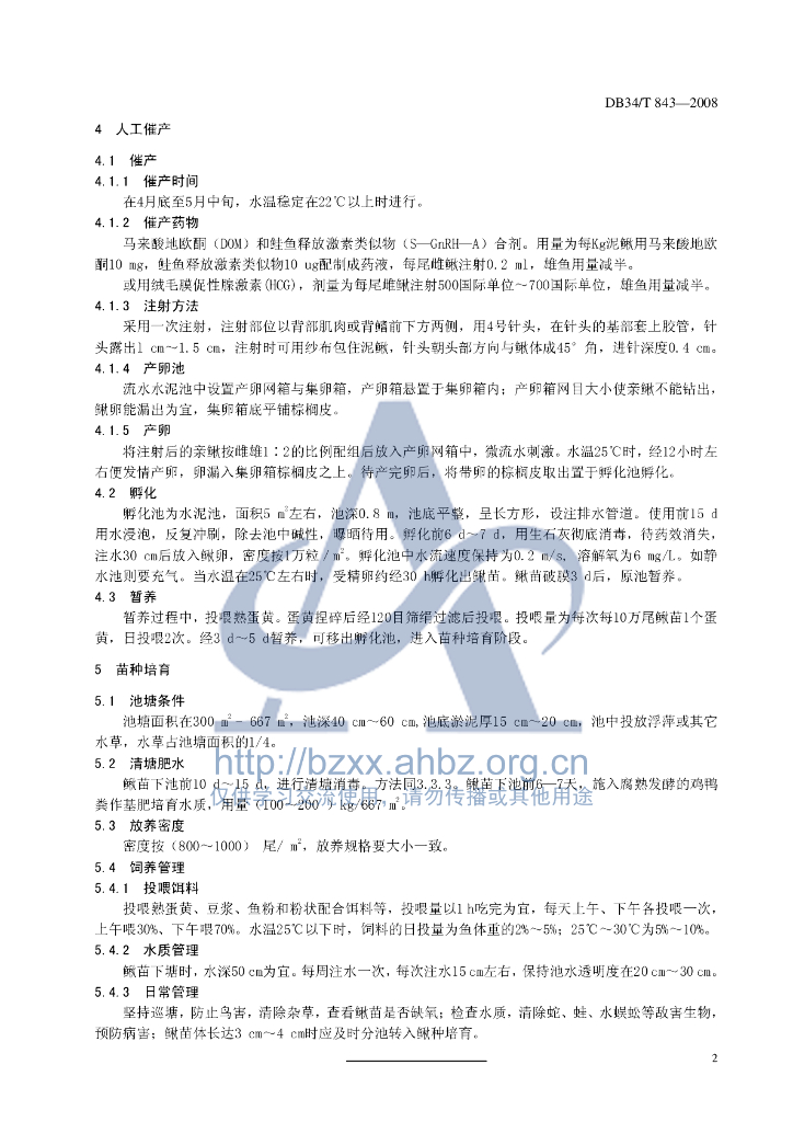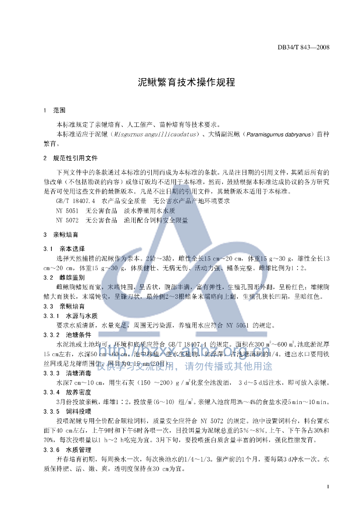 DB34/T 843-2008 泥鳅繁育技术操作规程