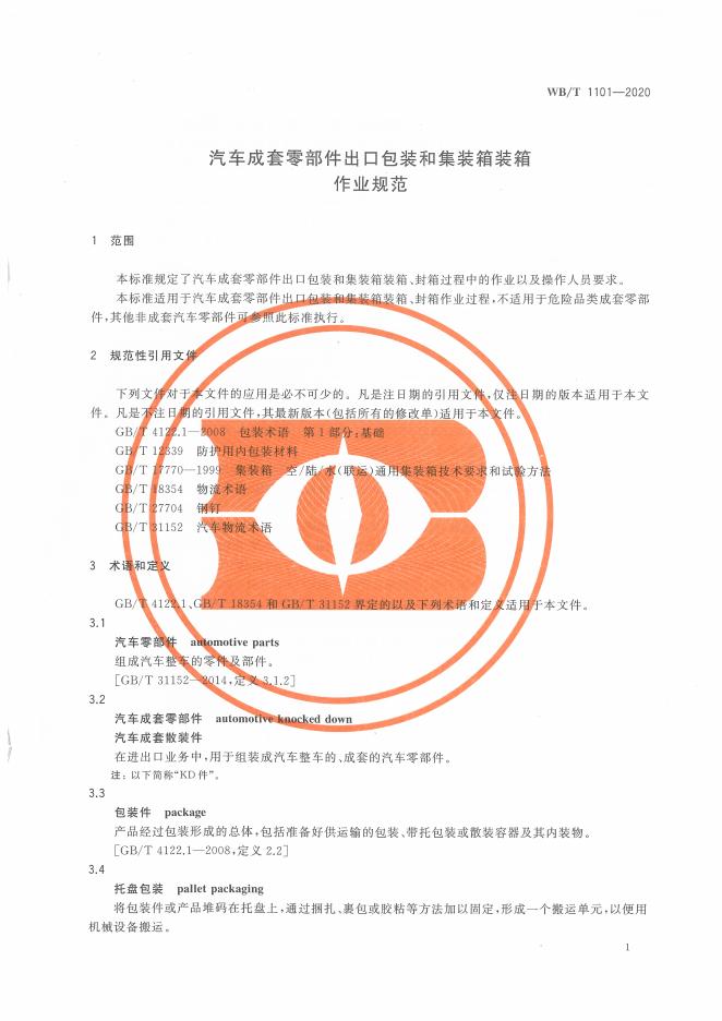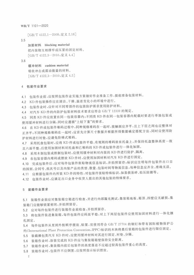 WB/T 1101-2020 汽车成套零部件出口包装和集装箱装箱作业规范