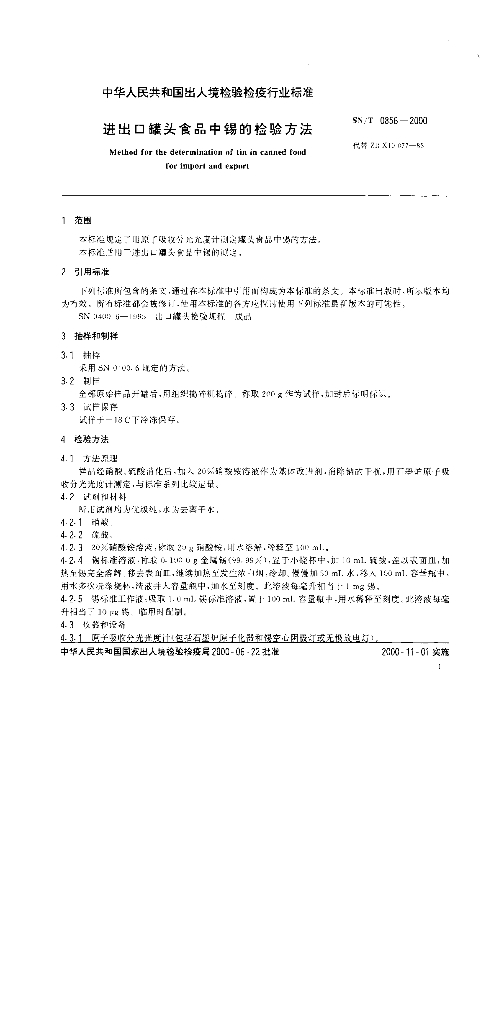 SN/T 0856-2000 进出口罐头食品中锡的检验方法