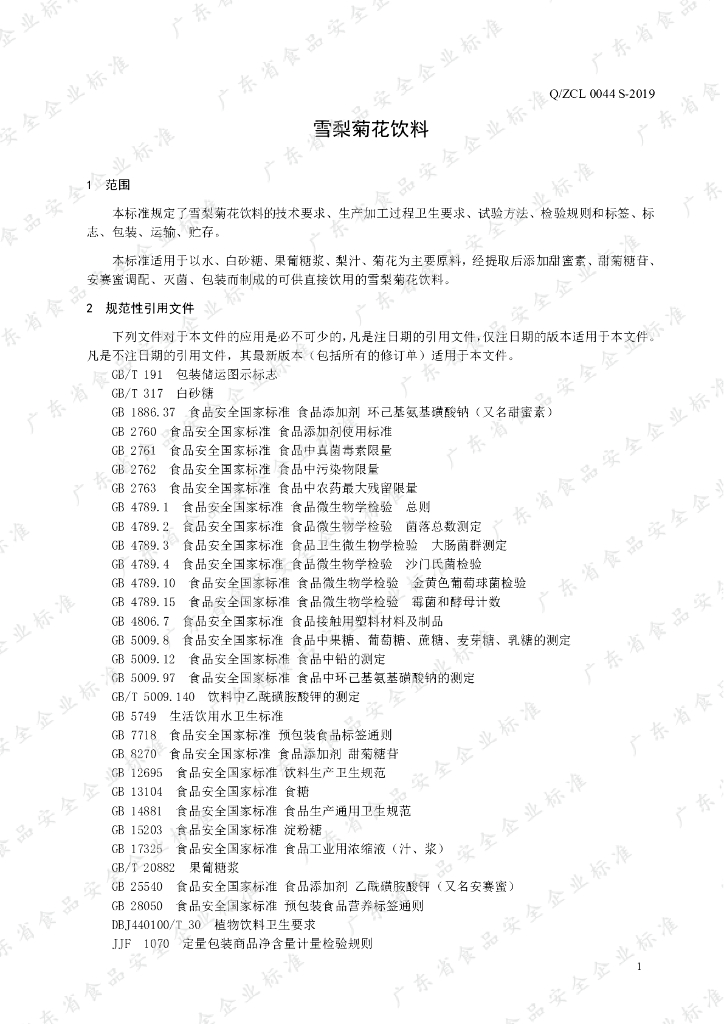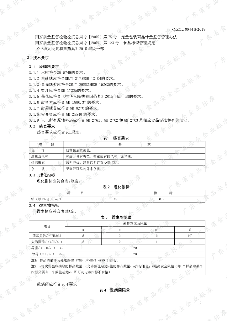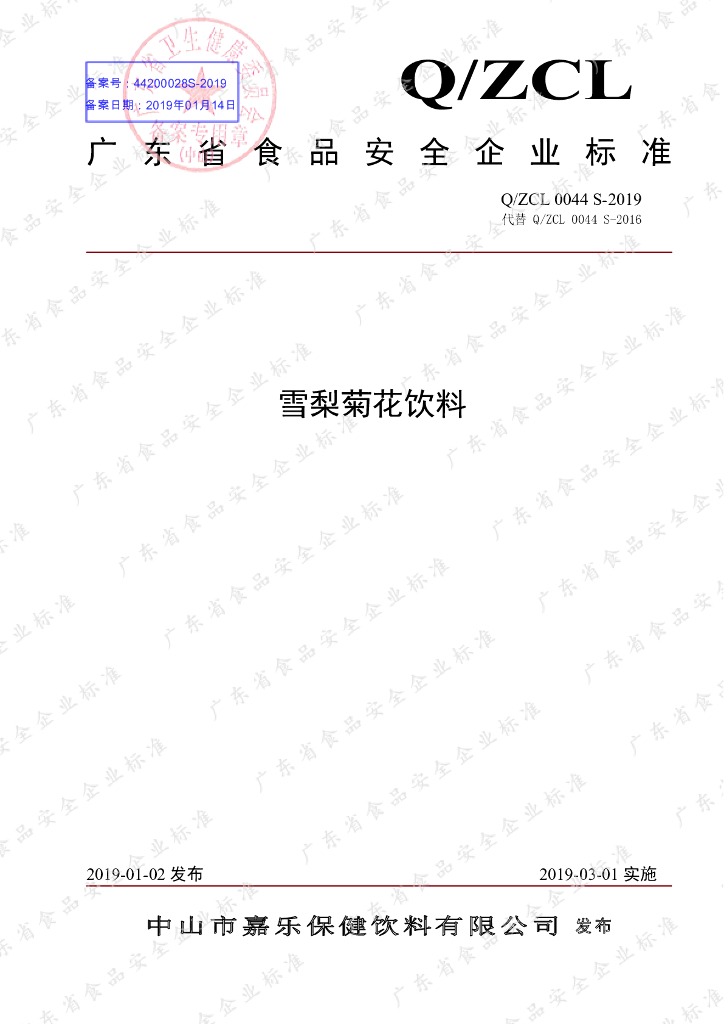 Q/ZCL 0044S-2019 雪梨菊花饮料