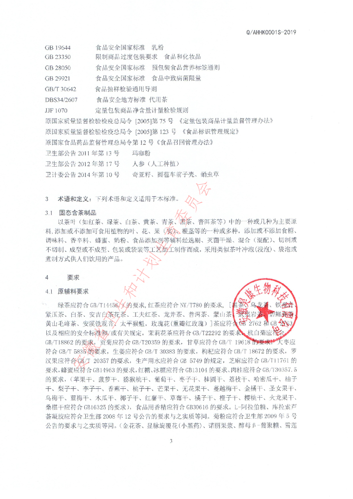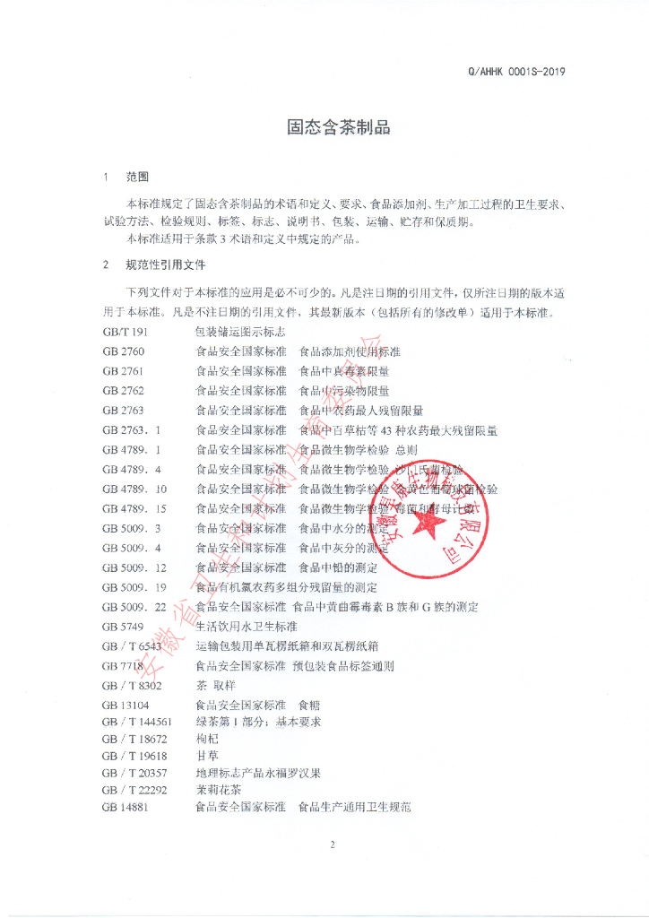 Q/AHHK 0001S-2019 固态含茶制品