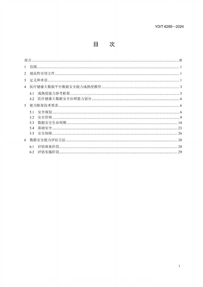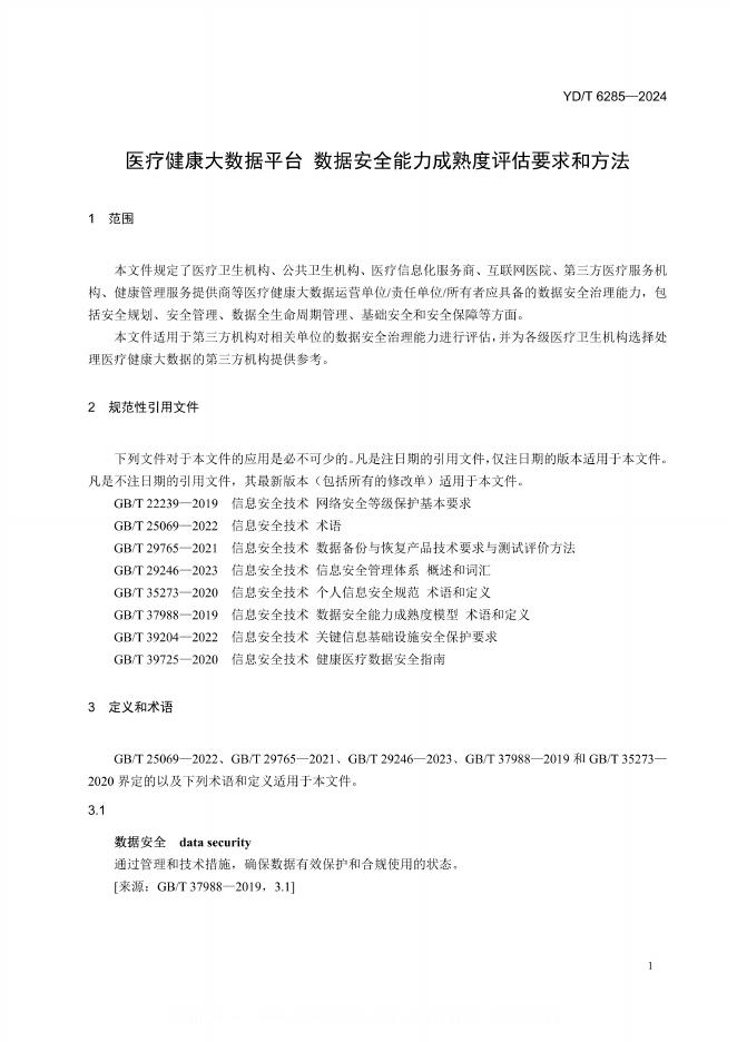 YD/T 6285-2024 医疗健康大数据平台 数据安全能力成熟度评估要求和方法