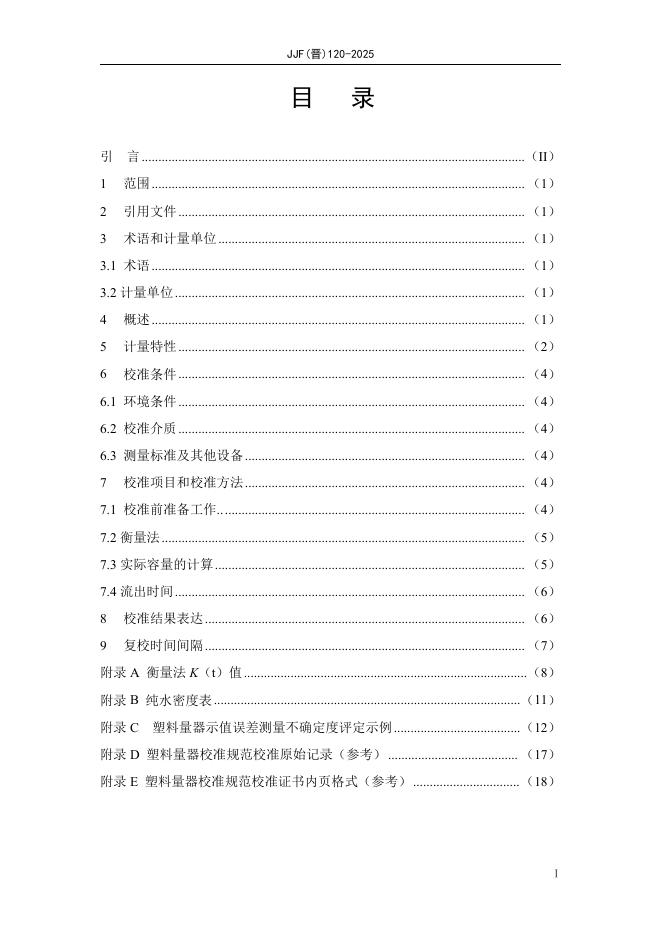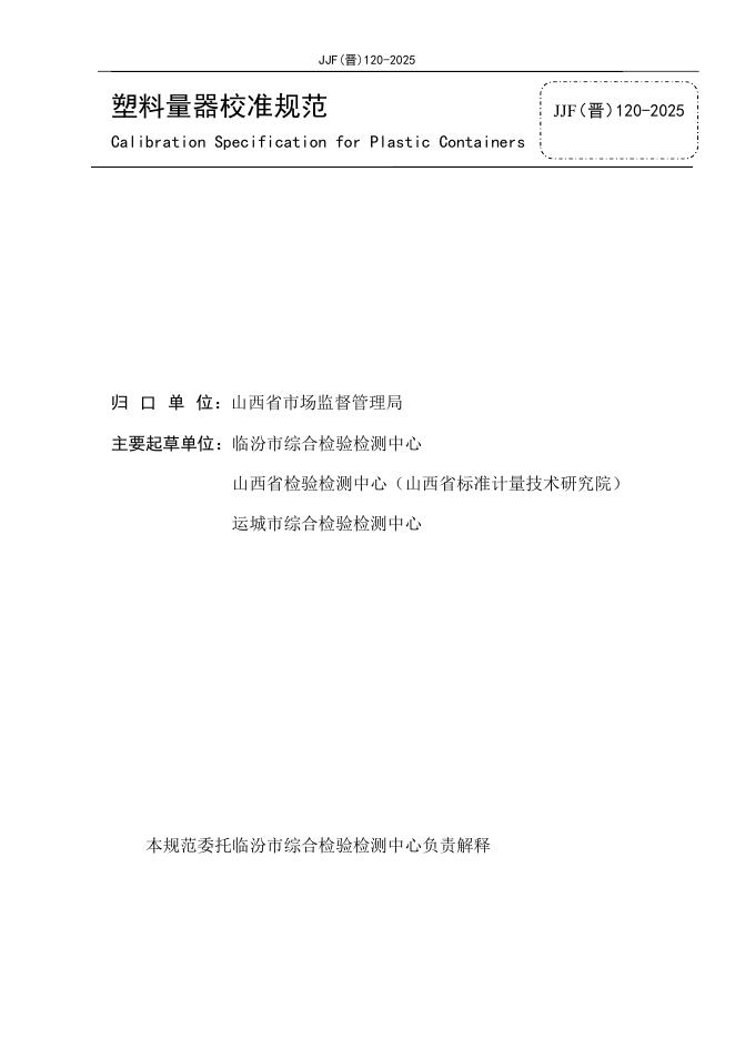 JJF(晋)120-2025 塑料量器校准规范