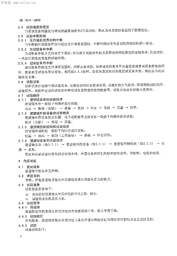 CB 1214-2012 潜艇潜望镜环境试验方法