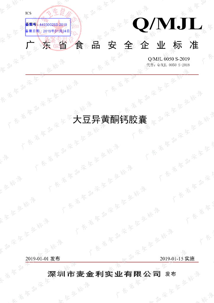 Q/MJL 0050S-2019 大豆异黄酮钙胶囊