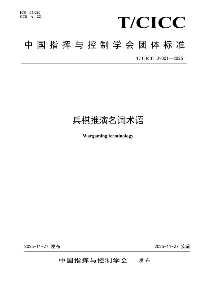T/CICC 31001-2025 兵棋推演名词术语