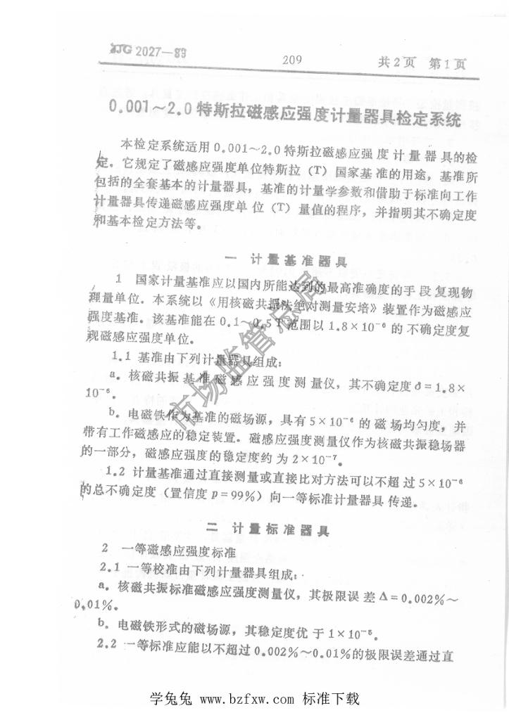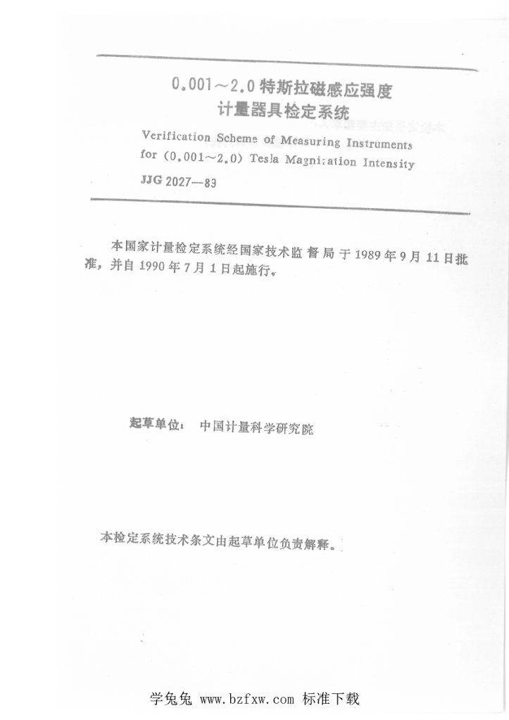 JJG 2027-1989 0.001~2.0特斯拉磁感应强度计量器具检定系统