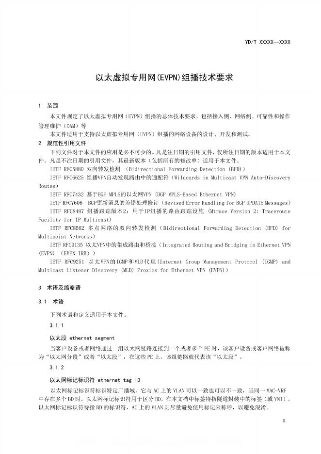 YD/T 6272-2024 以太虚拟专用网(EVPN)组播技术要求