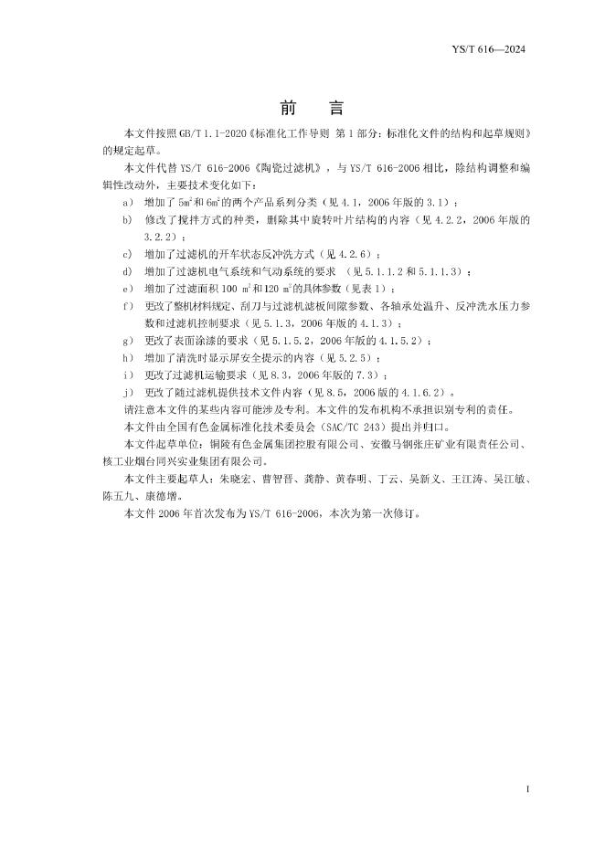 YS/T 616-2024 陶瓷过滤机