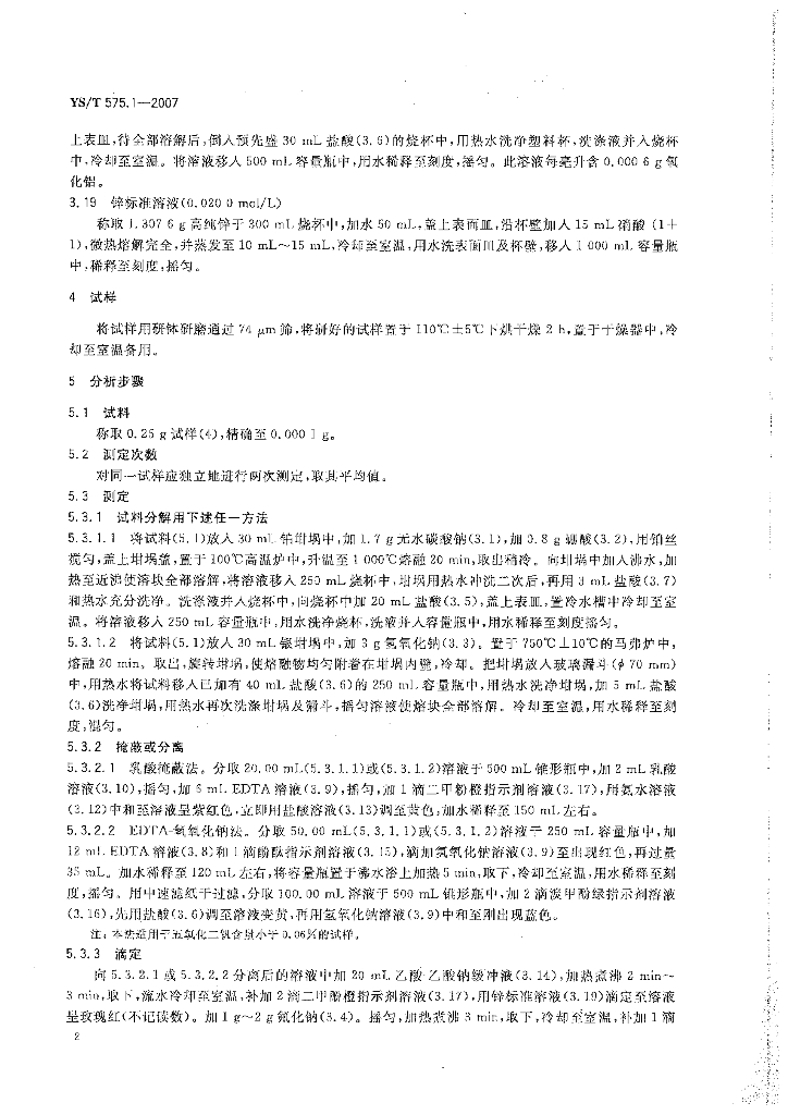 YS/T 575.1-2007 铝土矿石化学分析方法 第1部分:氧化铝含量的测定 EDTA滴定法