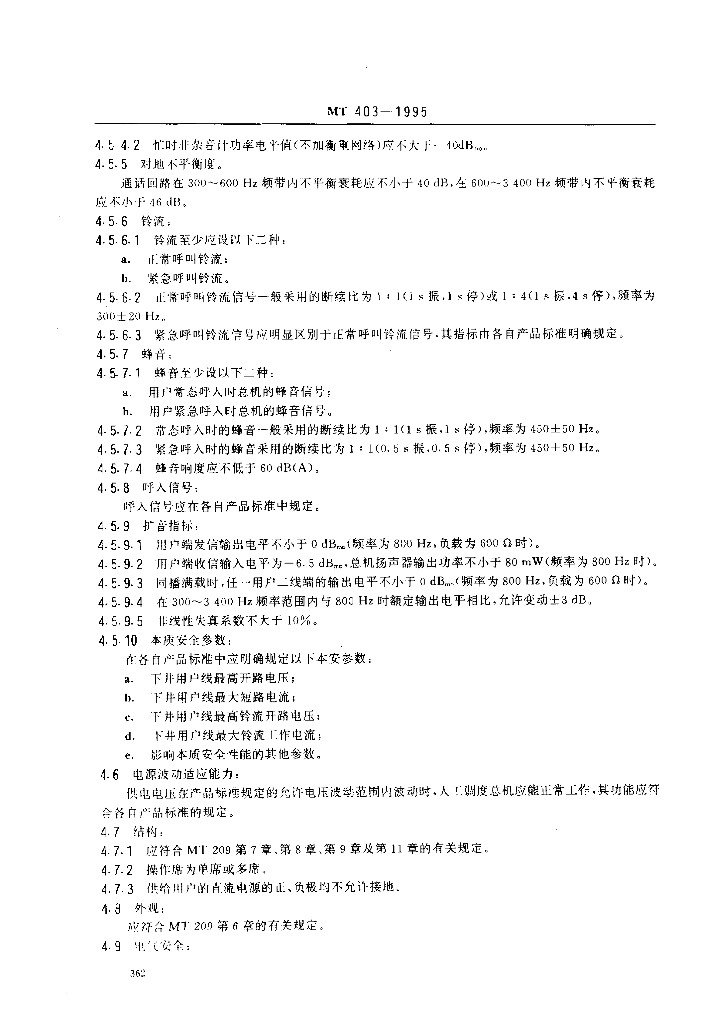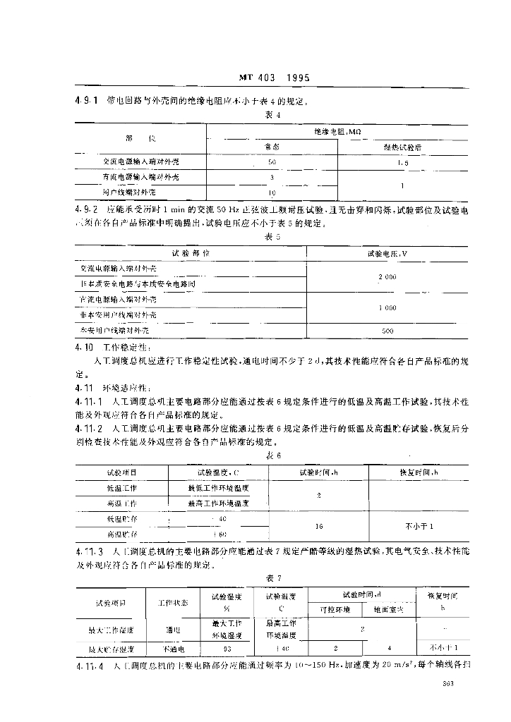 MT 403-1995 煤矿生产调度人工交换电话总机通用技术条件