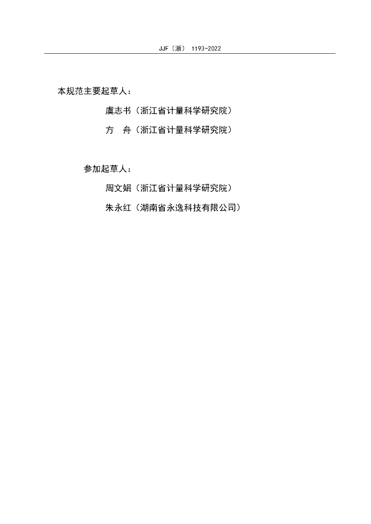 金挺(浙江省计量科学研究院)、王瑛辉(浙江省计量科学研究院)、叶怀储(浙江省计量科学研究院)、詹星宇(杭州市质量技术监督检测院)、沈斌(杭州徕之测量技术有限公司)、谭文明(深圳市中图仪器股份有限公司)