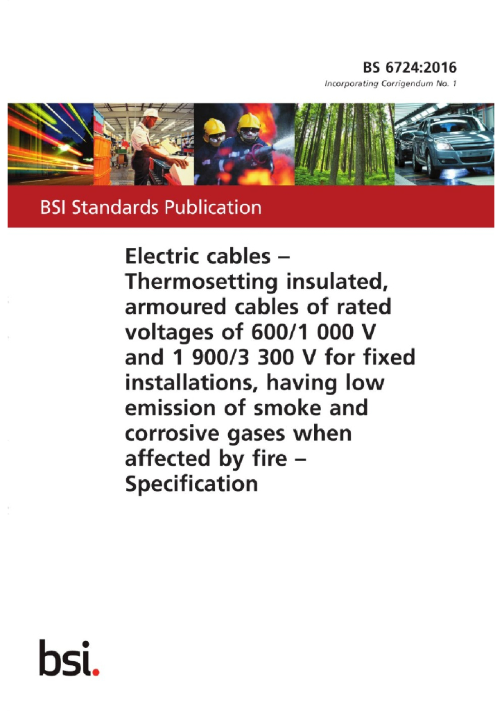 BS 6724:2016 固定敷设用、受火侵袭时烟雾和腐蚀性气体排放量低的额定电压600 1000V和1900 3300V热固性绝缘铠装电缆