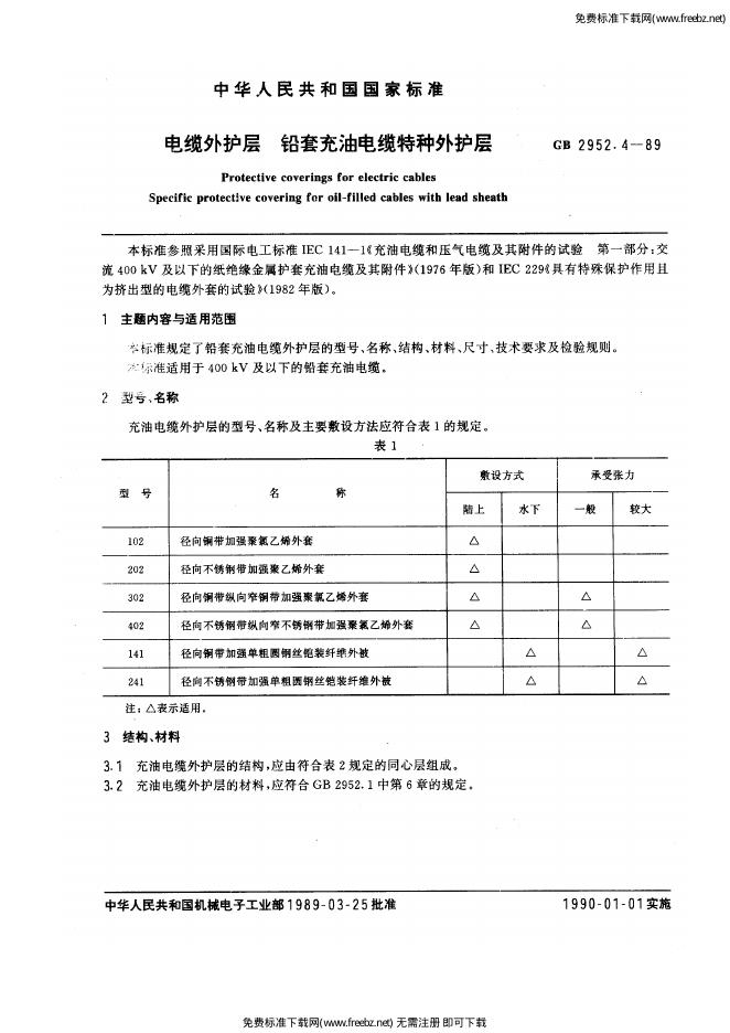 GB/T 2952.4-1989 电缆外护层 铅套充油电缆特种外护层