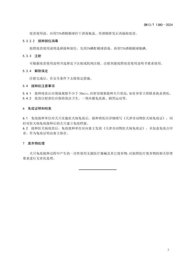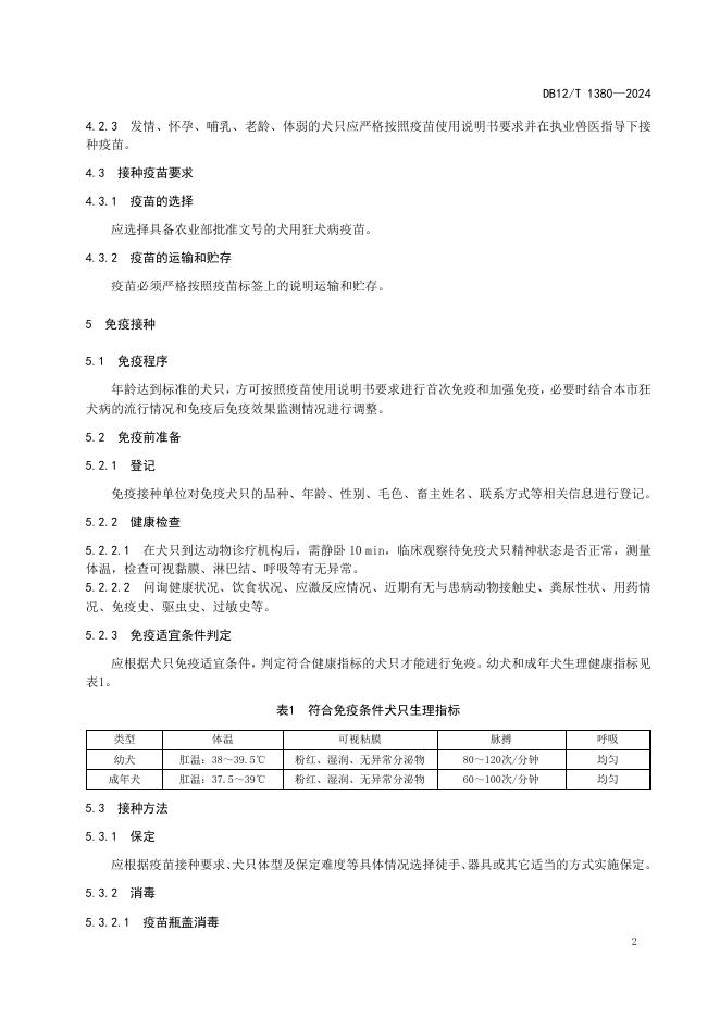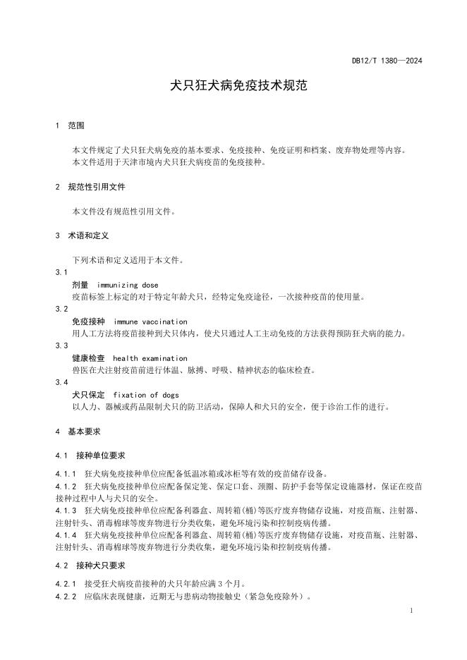 DB12/T 1380-2024 犬只狂犬病免疫技术规范