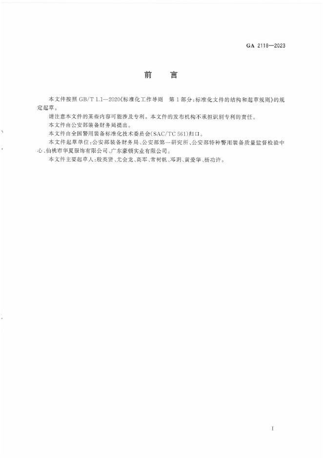 公安部装备财务局、公安部第一研究所、公安部特种警用装备质量监督检验中心、仙桃市华夏服饰有限公司、广东豪顿实业有限公司